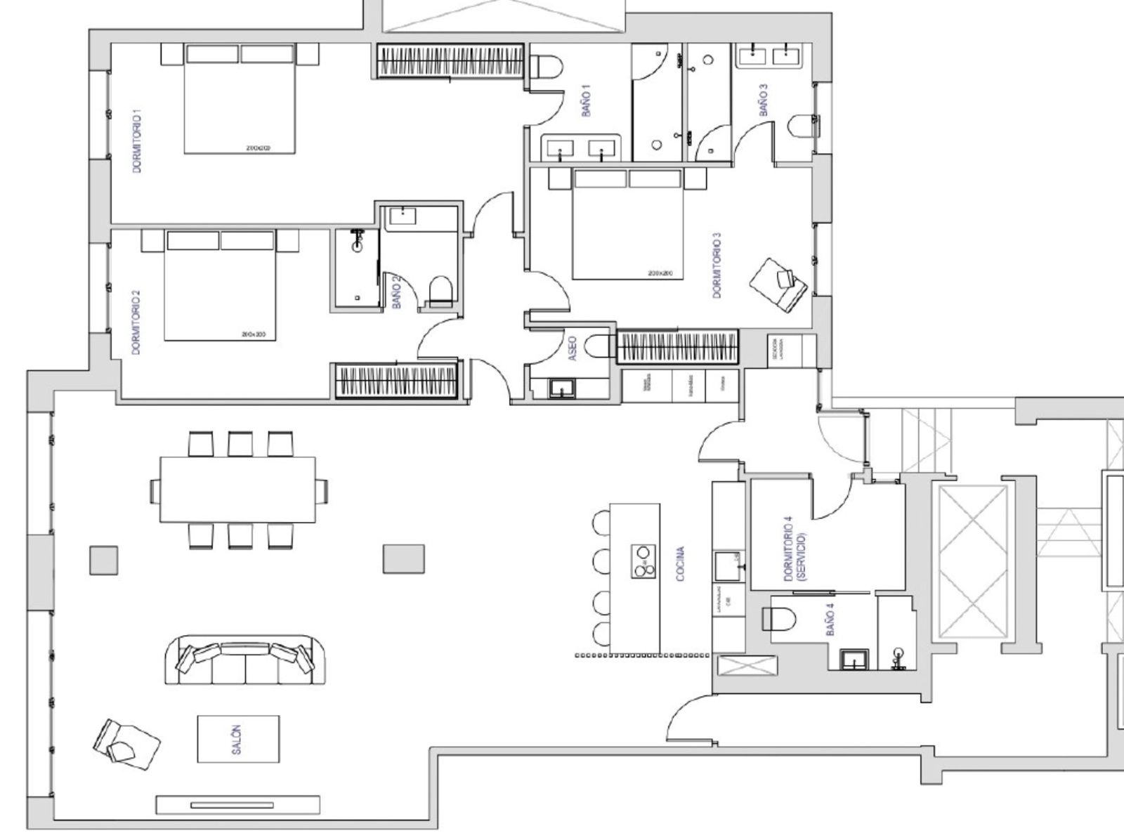 Flat for sale in Madrid, with 200 m2, 4 rooms and 5 bathrooms, Storage room, Furnished and Air conditioning.