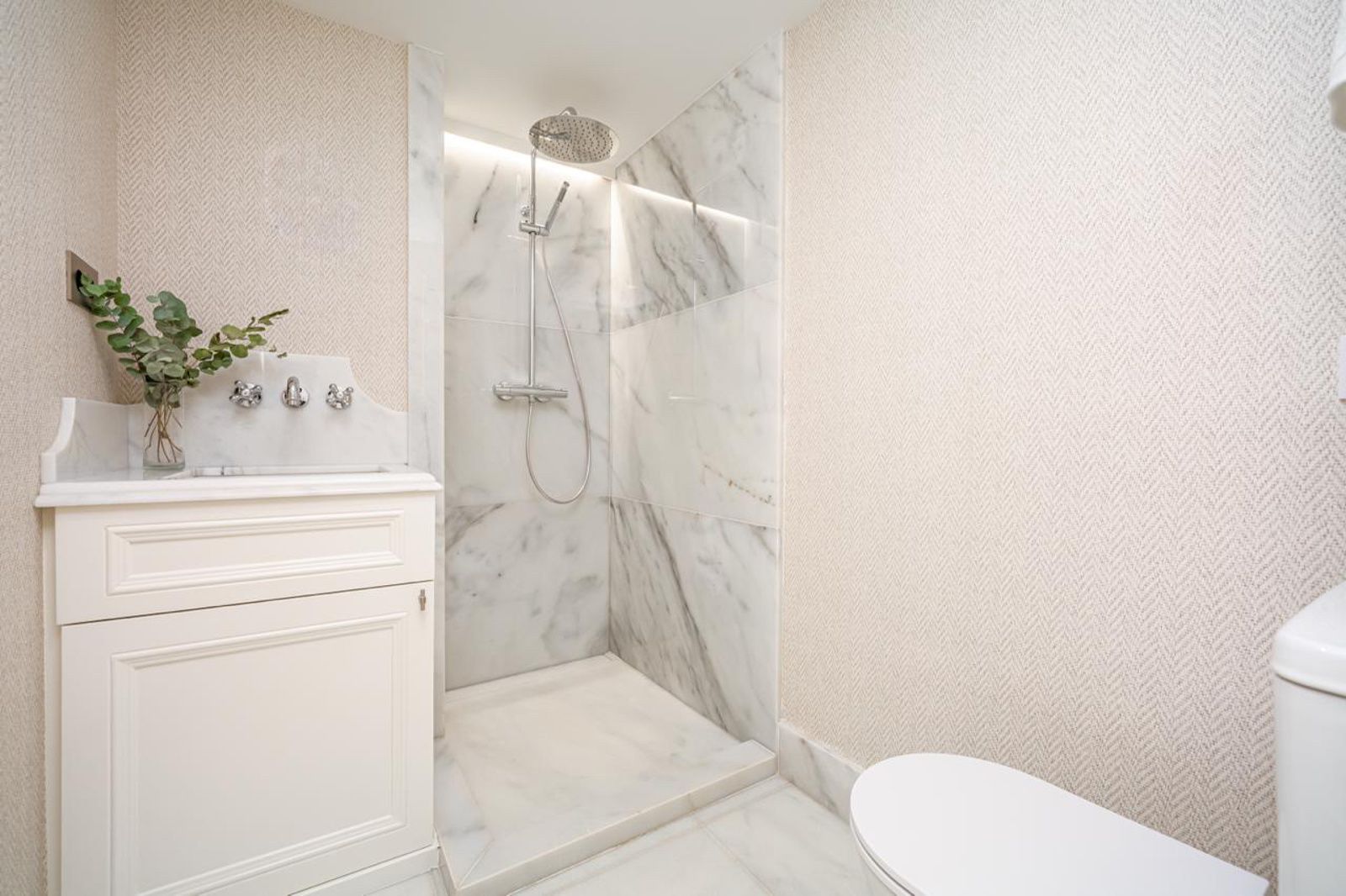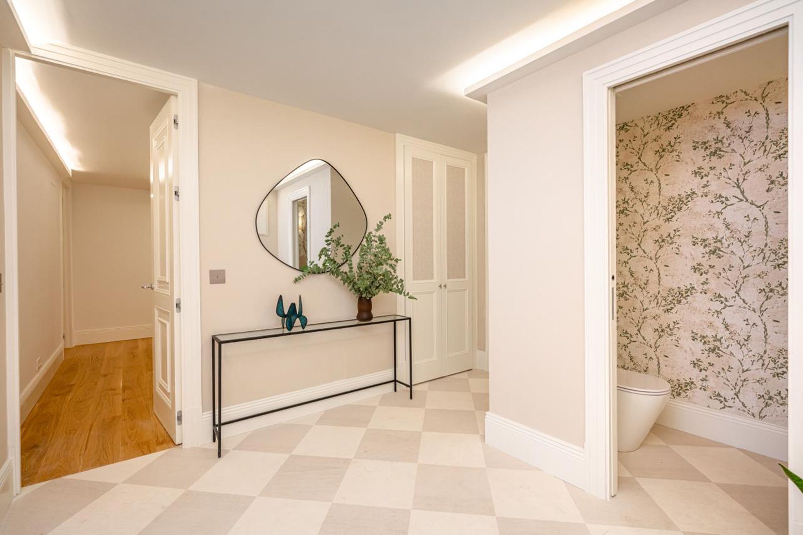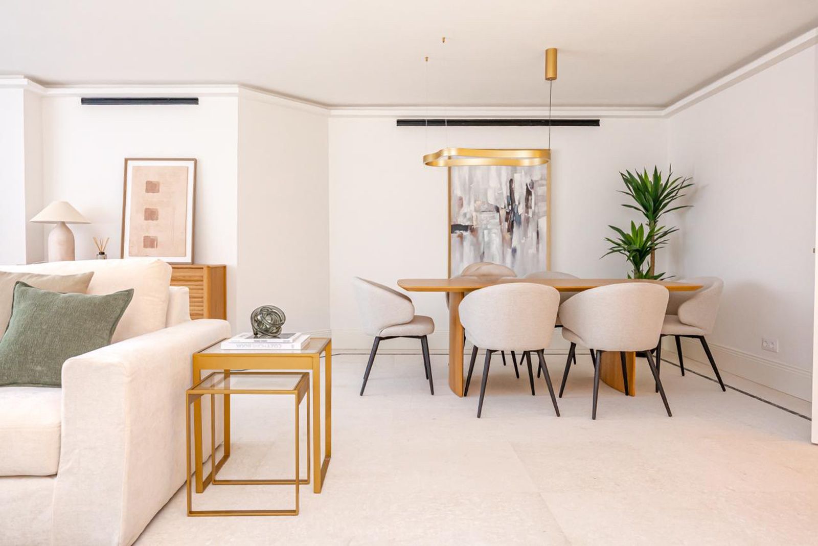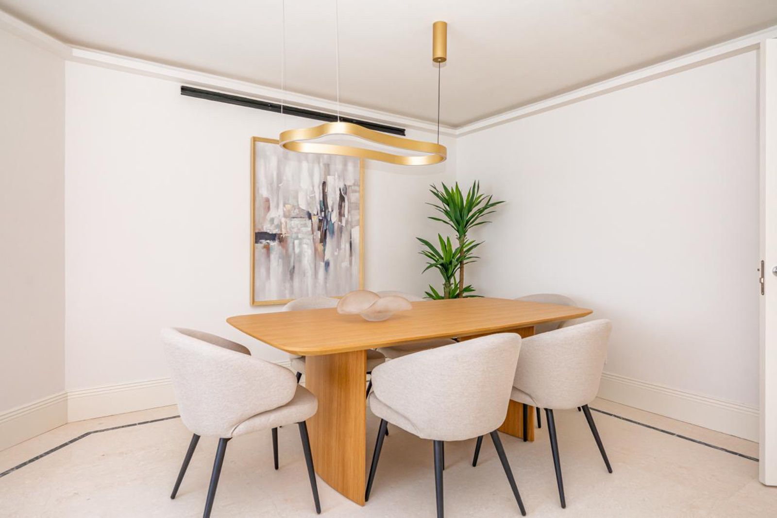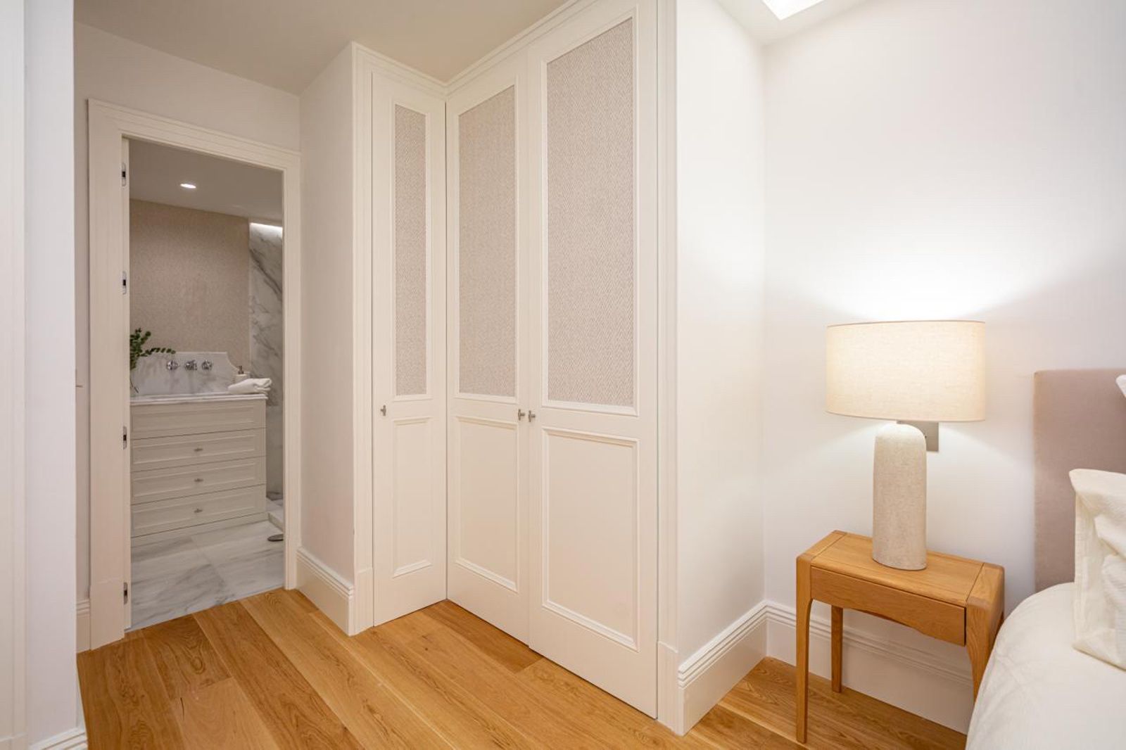 Su ubicación estratégica permite un acceso ágil al resto de la ciudad, gracias a diversas líneas de metro, autobuses y su proximidad al eje del Paseo de la Castellana. La vivienda dispone de un amplio salón y un comedor contiguo, ambos bañados por luz natural y cuidadosamente separados del resto de estancias, generando espacios definidos y confortables. La cocina, cerrada y completamente equipada, presenta un diseño funcional, ideal para quienes valoran la independencia entre las áreas sociales y de servicio. Cuenta con tres dormitorios en suite y un aseo de cortesía, lo que garantiza máxima comodidad y privacidad. La distribución está cuidadosamente pensada, con una clara separación entre las zonas sociales y privadas, ofreciendo equilibrio y confort en cada rincón.