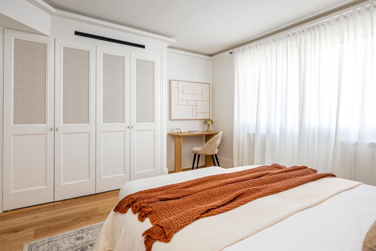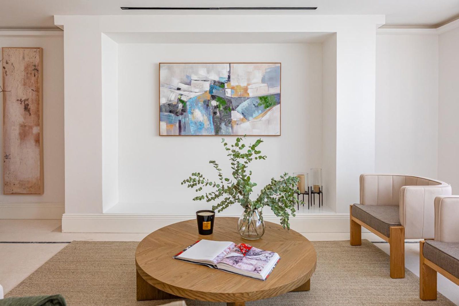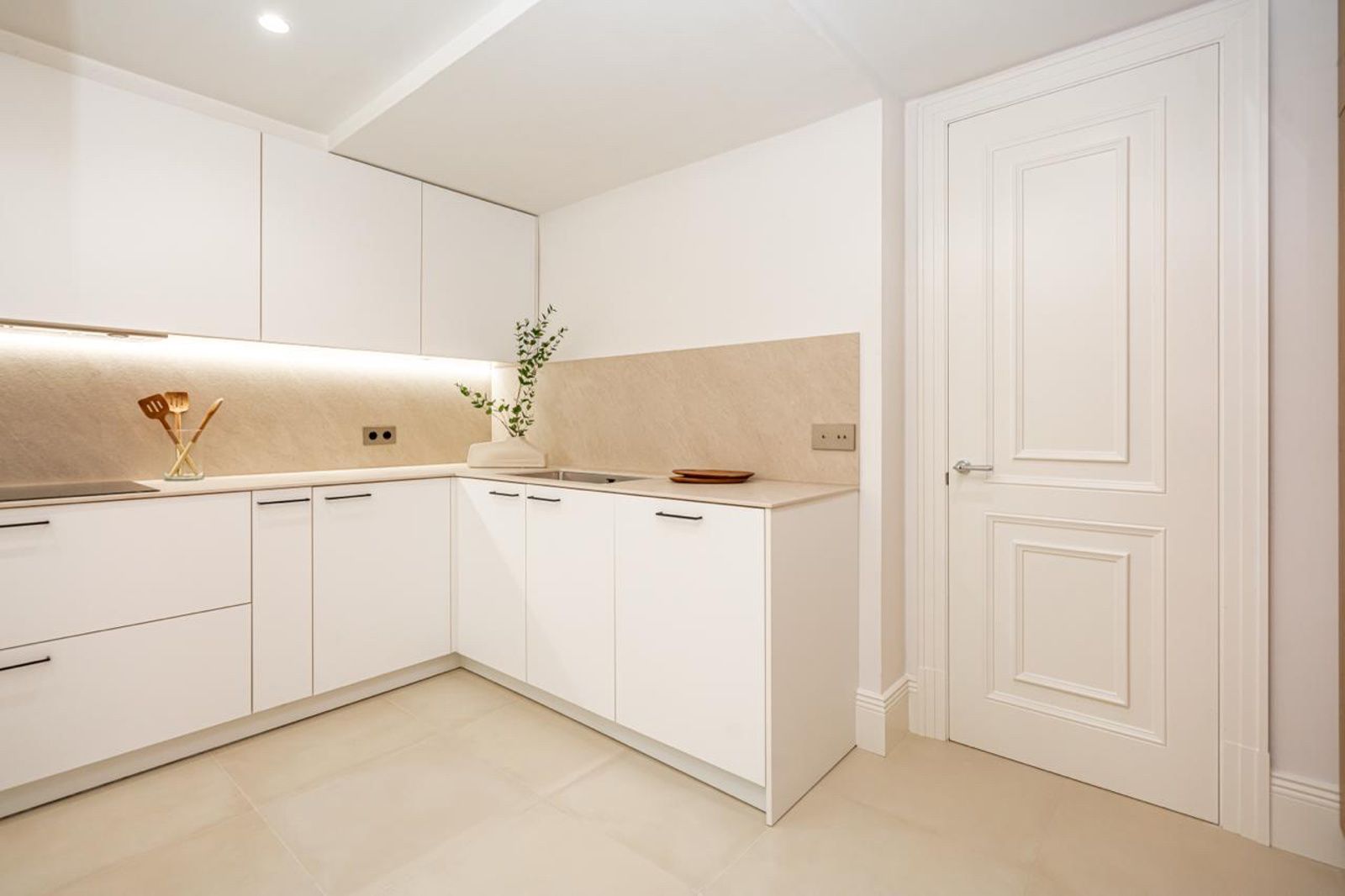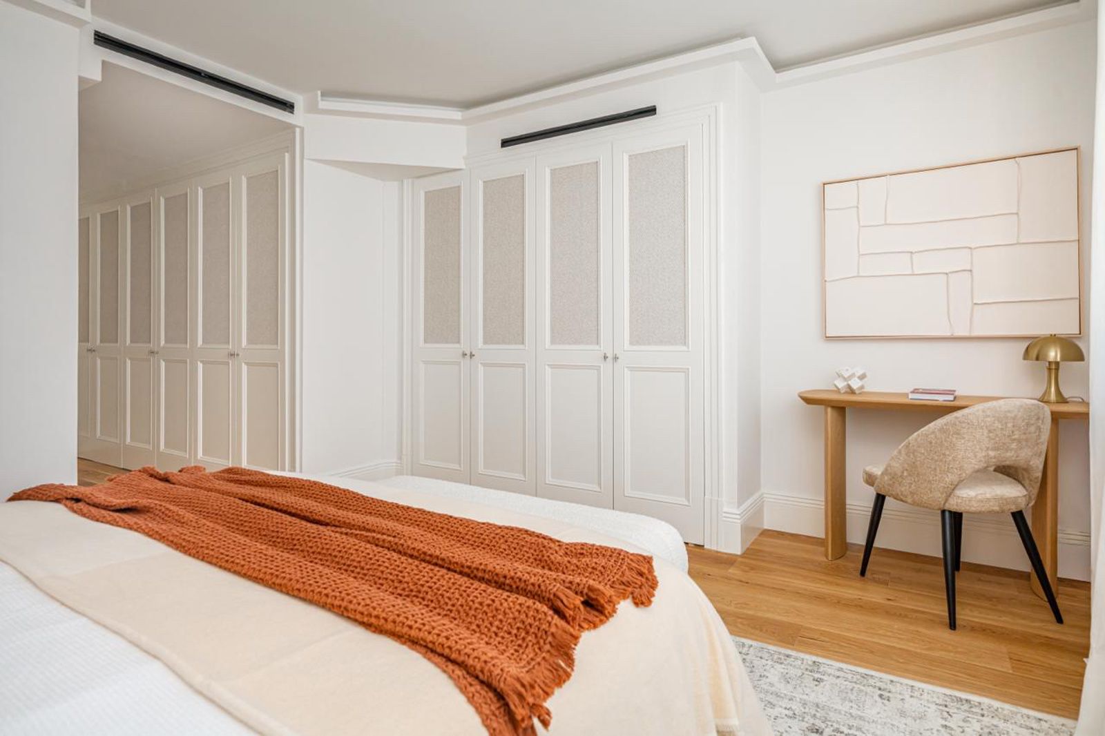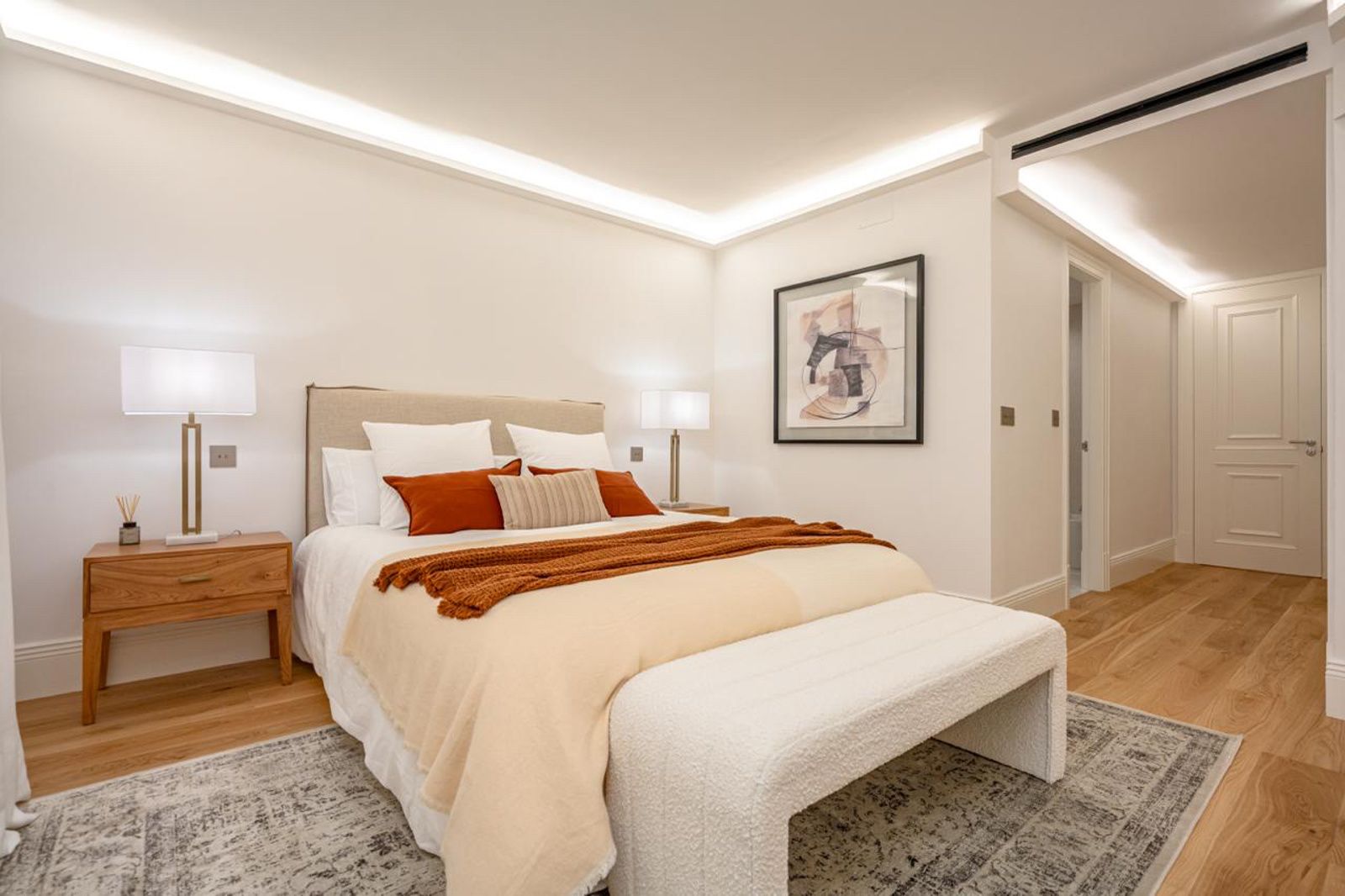 Su ubicación estratégica permite un acceso ágil al resto de la ciudad, gracias a diversas líneas de metro, autobuses y su proximidad al eje del Paseo de la Castellana. La vivienda dispone de un amplio salón y un comedor contiguo, ambos bañados por luz natural y cuidadosamente separados del resto de estancias, generando espacios definidos y confortables. La cocina, cerrada y completamente equipada, presenta un diseño funcional, ideal para quienes valoran la independencia entre las áreas sociales y de servicio. Cuenta con tres dormitorios en suite y un aseo de cortesía, lo que garantiza máxima comodidad y privacidad. La distribución está cuidadosamente pensada, con una clara separación entre las zonas sociales y privadas, ofreciendo equilibrio y confort en cada rincón.
