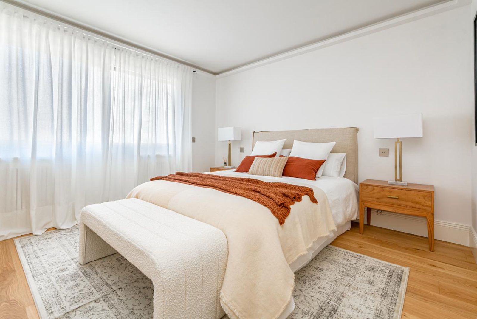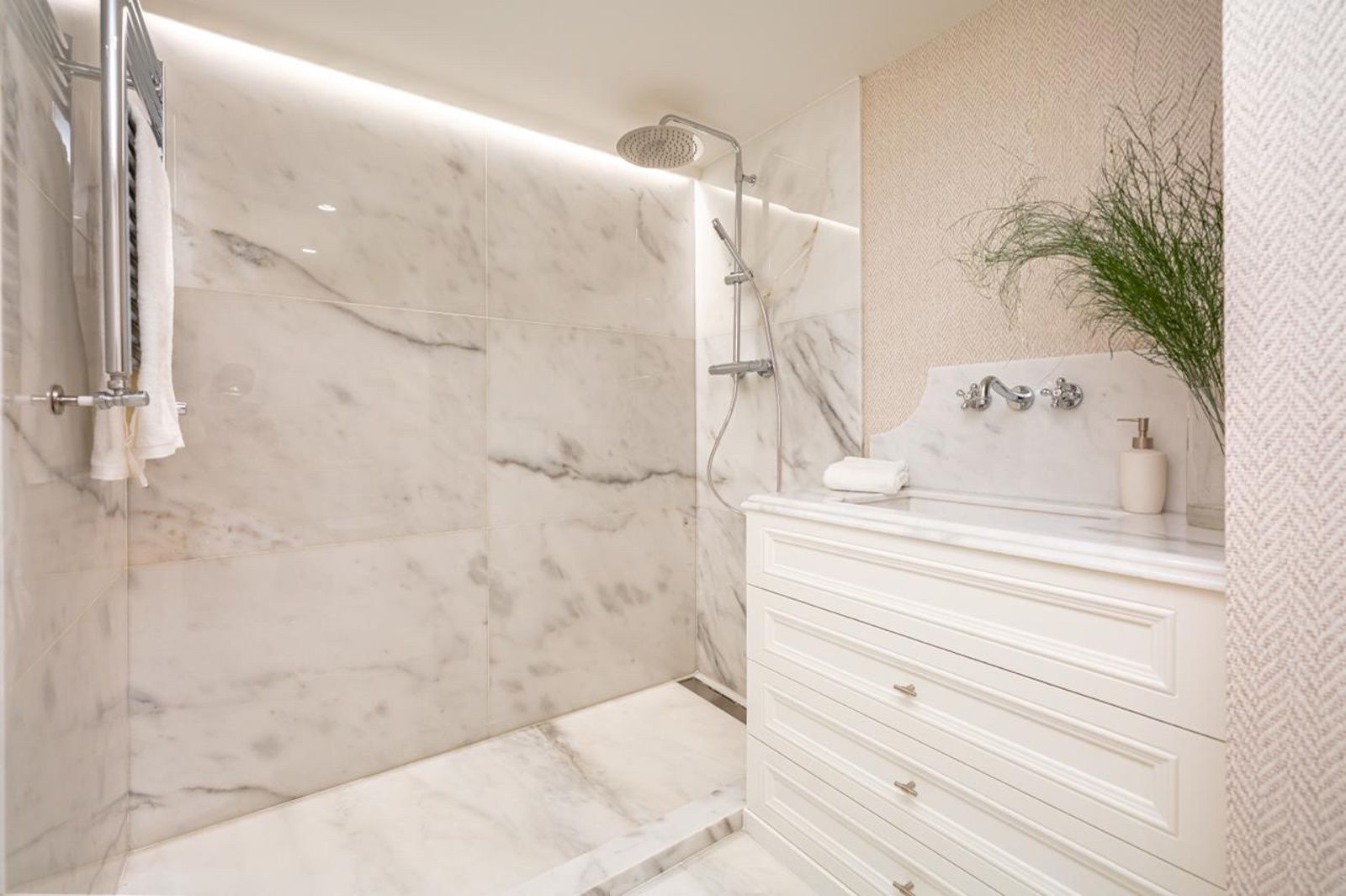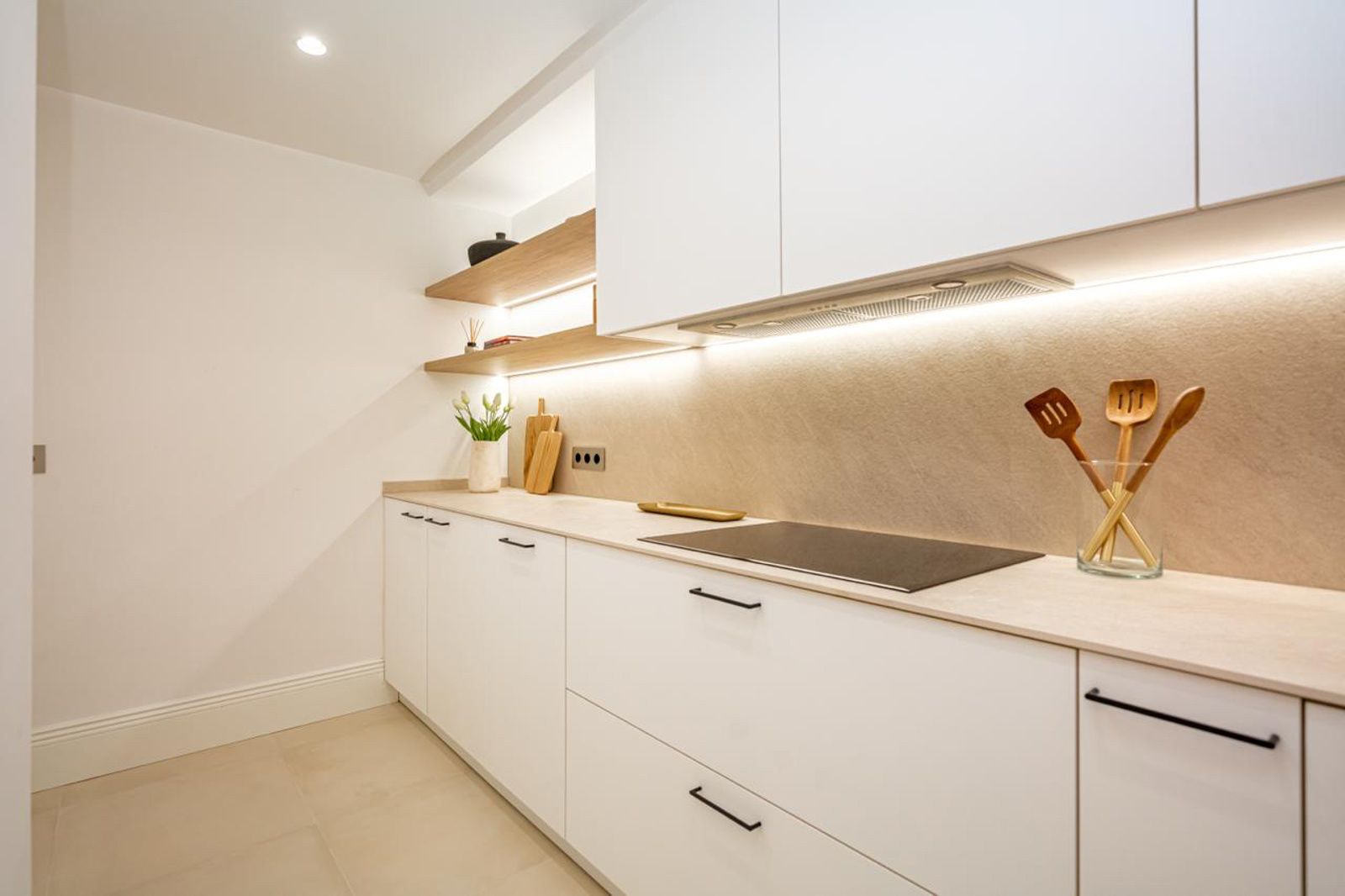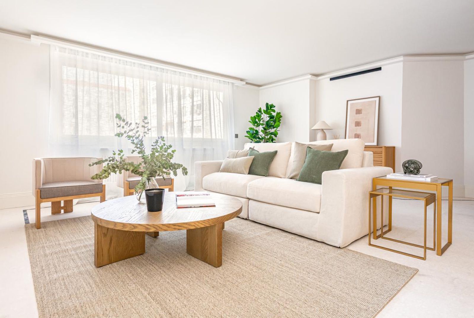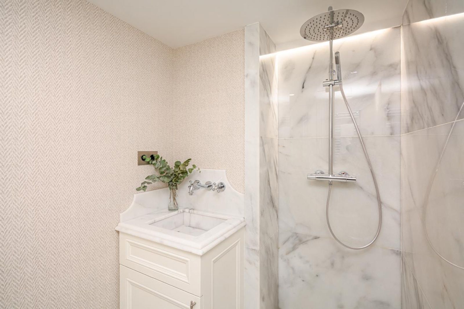 Su ubicación estratégica permite un acceso ágil al resto de la ciudad, gracias a diversas líneas de metro, autobuses y su proximidad al eje del Paseo de la Castellana. La vivienda dispone de un amplio salón y un comedor contiguo, ambos bañados por luz natural y cuidadosamente separados del resto de estancias, generando espacios definidos y confortables. La cocina, cerrada y completamente equipada, presenta un diseño funcional, ideal para quienes valoran la independencia entre las áreas sociales y de servicio. Cuenta con tres dormitorios en suite y un aseo de cortesía, lo que garantiza máxima comodidad y privacidad. La distribución está cuidadosamente pensada, con una clara separación entre las zonas sociales y privadas, ofreciendo equilibrio y confort en cada rincón.