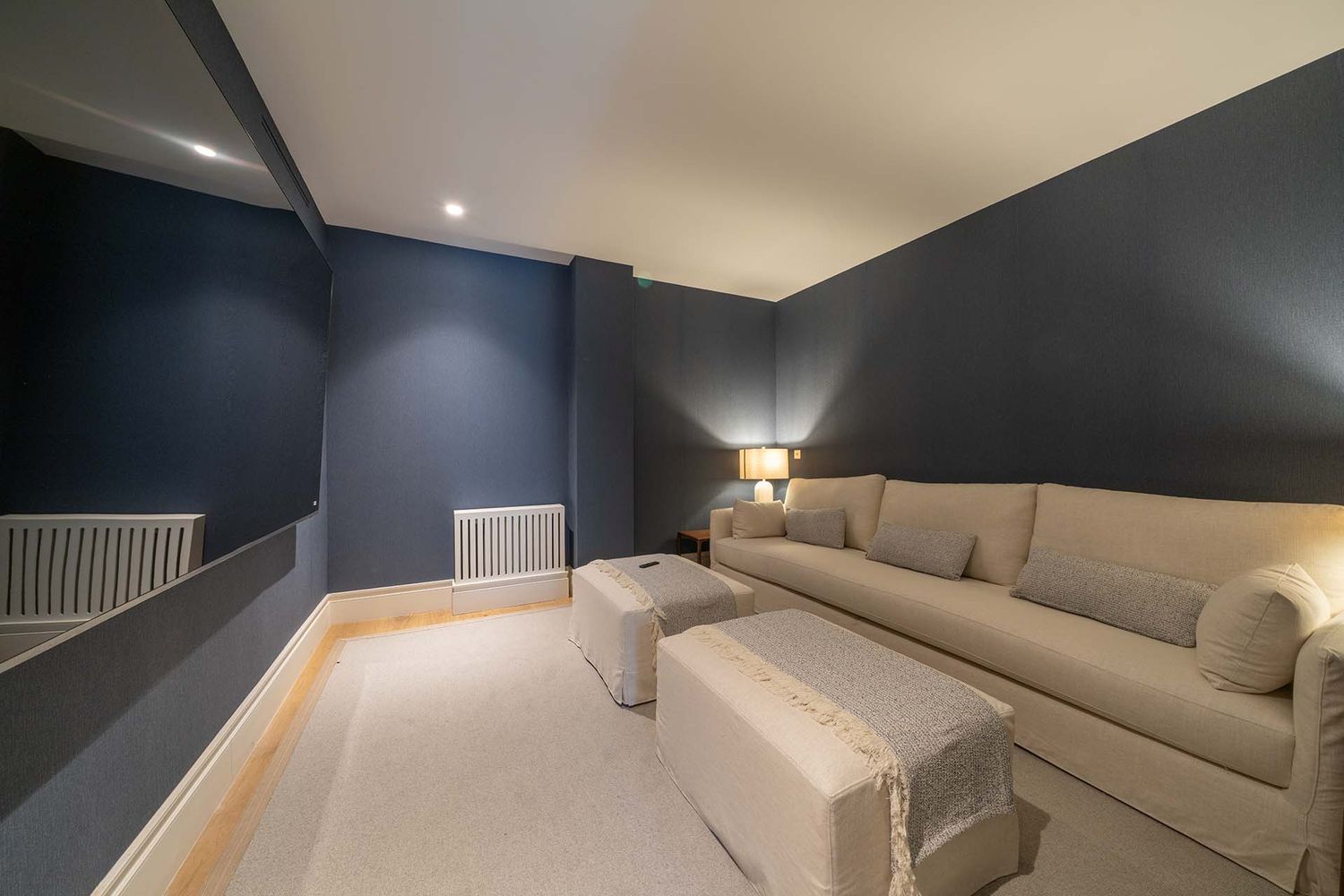 • Además, dispone de un aseo de cortesía y un espectacular family room / sala de TV equipada con una pantalla Samsung de 100 pulgadas.