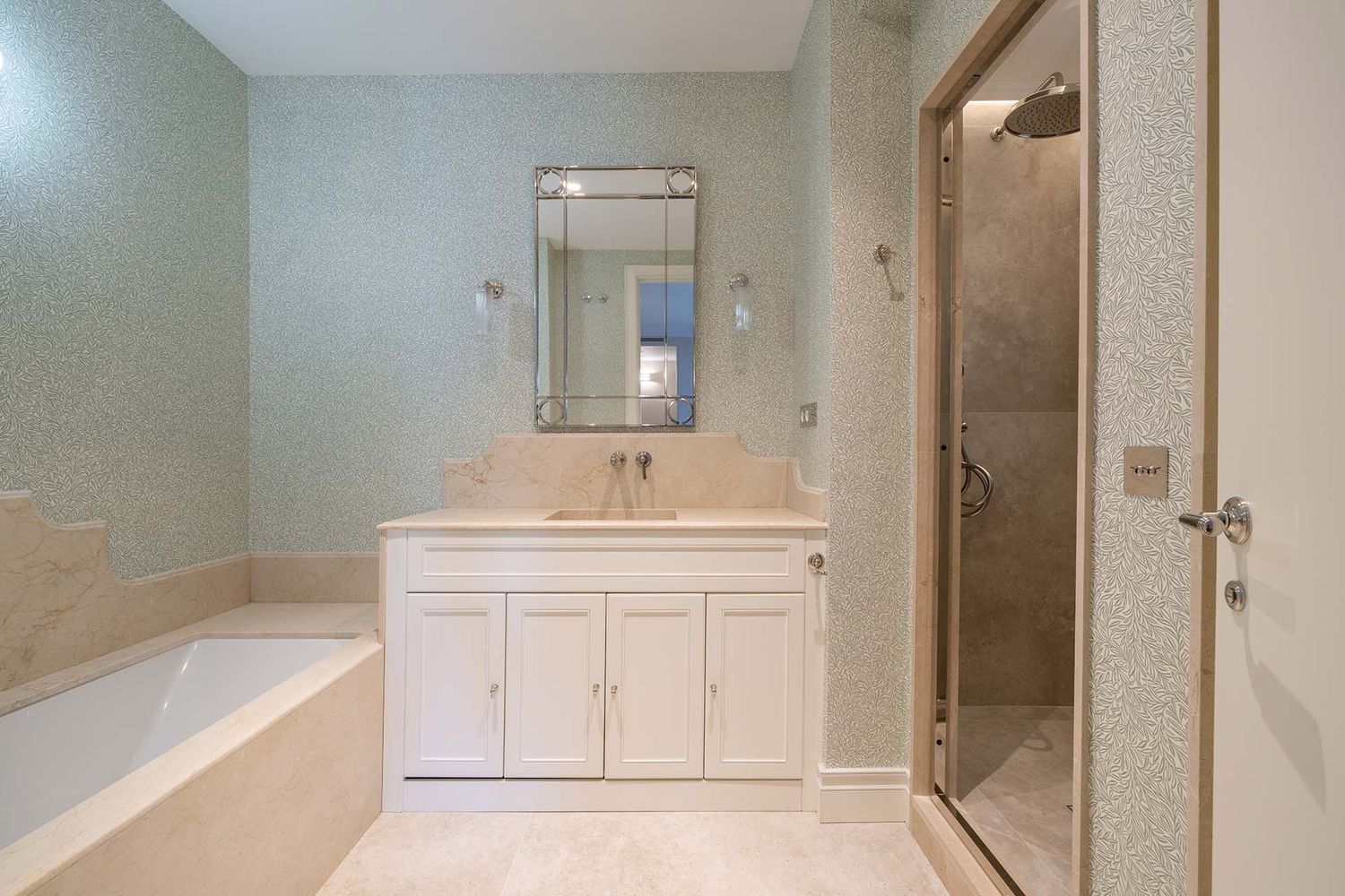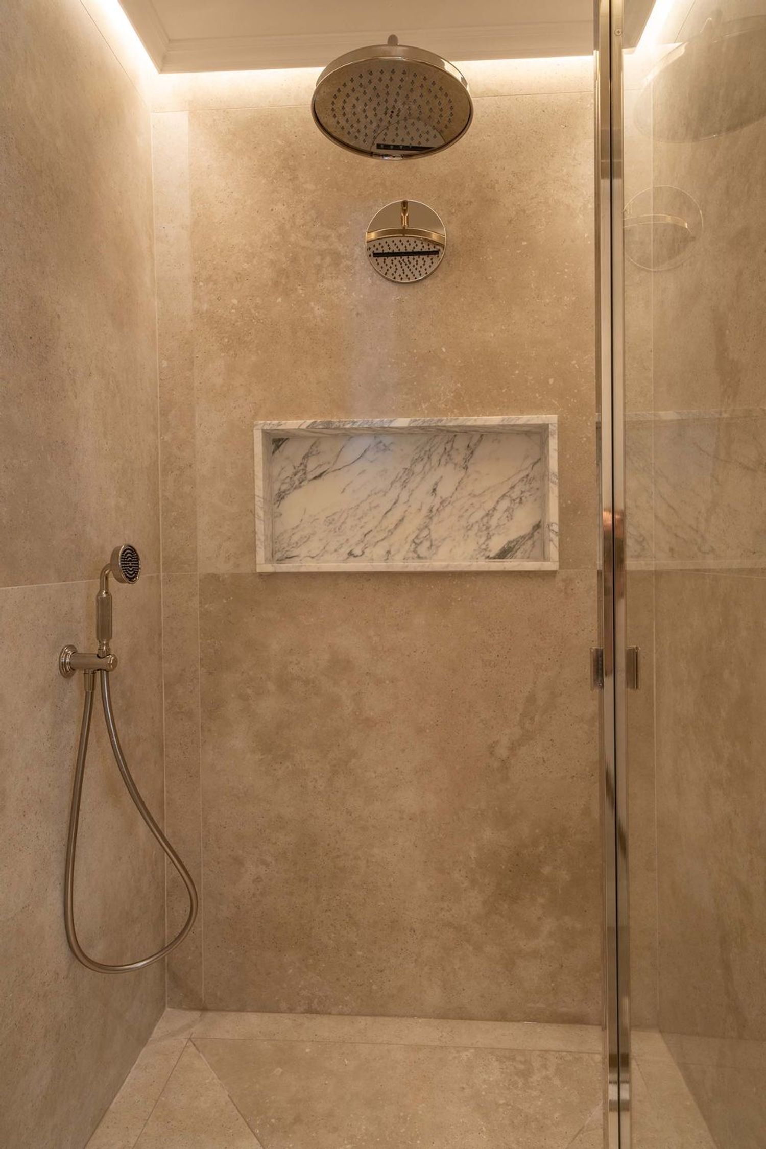 • Los baños, auténticas piezas de diseño, incorporan piedra natural, griferías Gessi y elementos de forja artesanal, con duchas de gran tamaño y bañeras integradas.