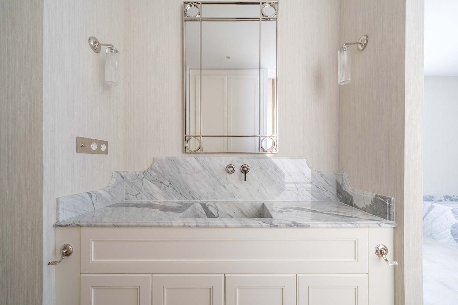 • Carpintería a medida en bibliotecas, armarios, lavabos, rodapiés y jambas, en madera lacada.