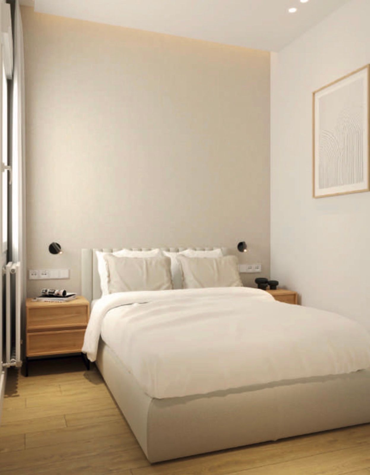 El inmueble se encuentra para reformar, permitiendo innumerables opciones, aquí le presentamos plano de una posible reforma con 4 dormitorios y 4 baños, también se puede diseñar a medida del futuro propietario. Los techos superan los 2,90 metros de altura. La fachada es protegida, representativa e histórica, con un siglo de antigüedad. Además hay dos plazas de garaje opcionales a parte del precio para coches grandes, en la finca contigua, a unos pocos metros del portal.