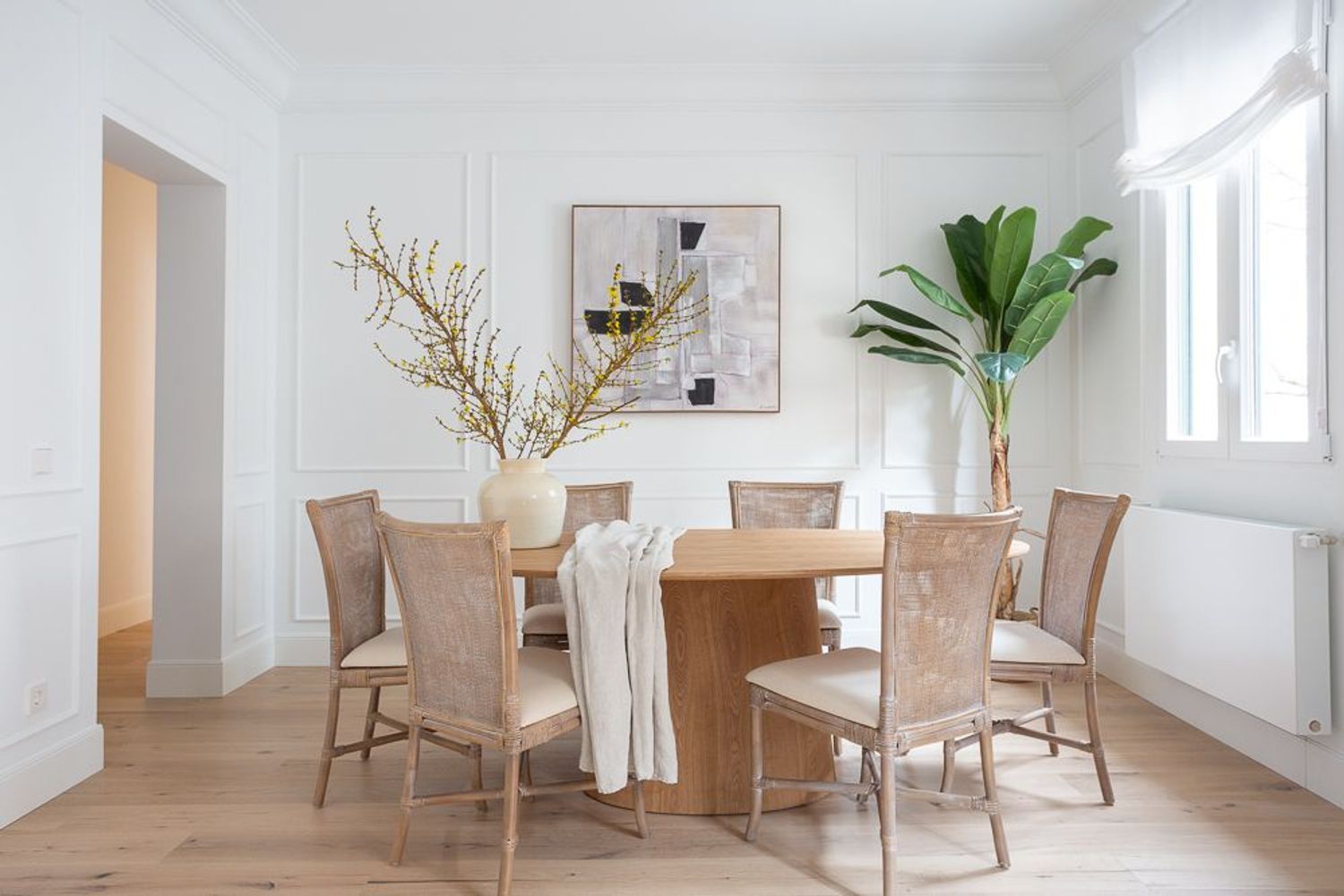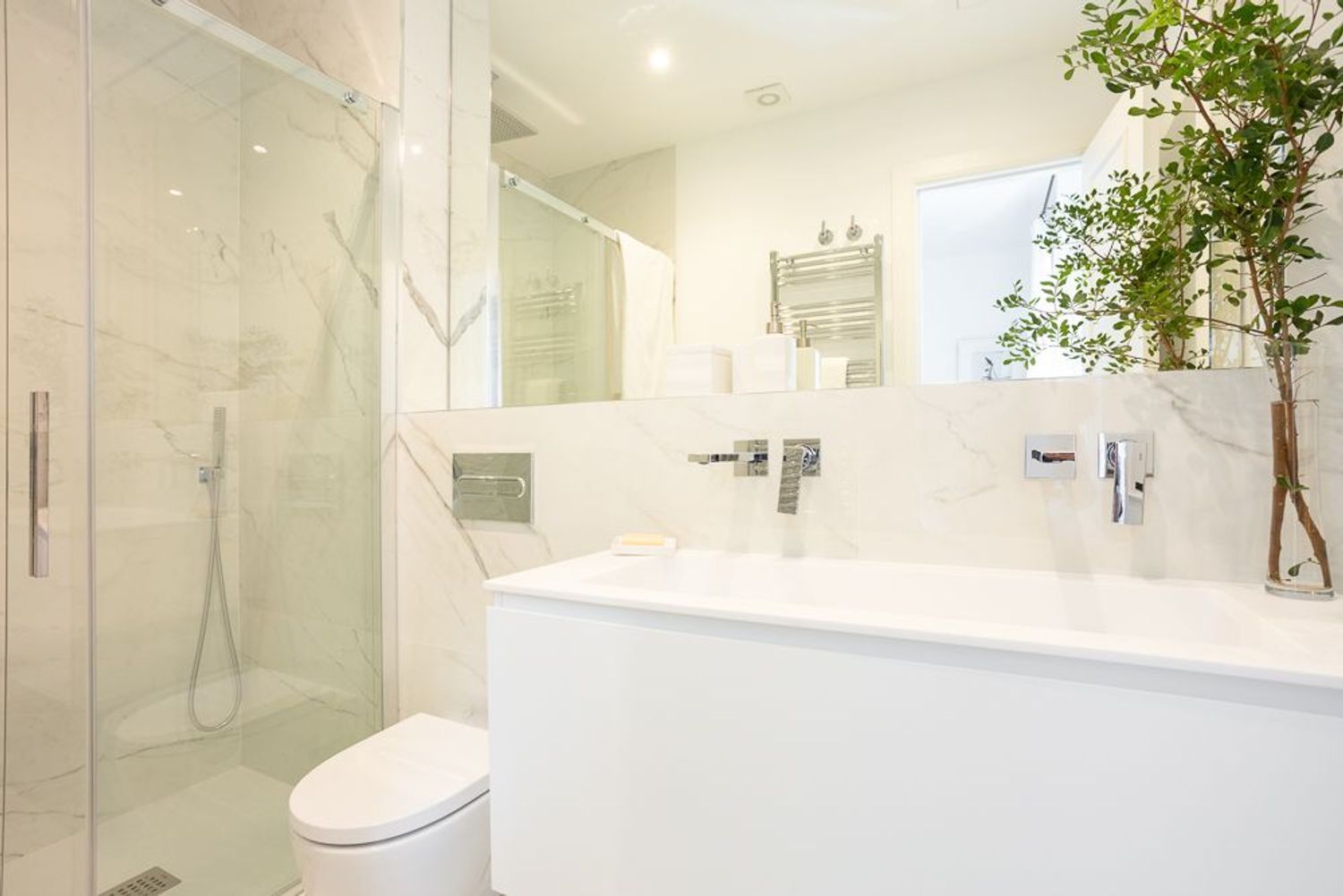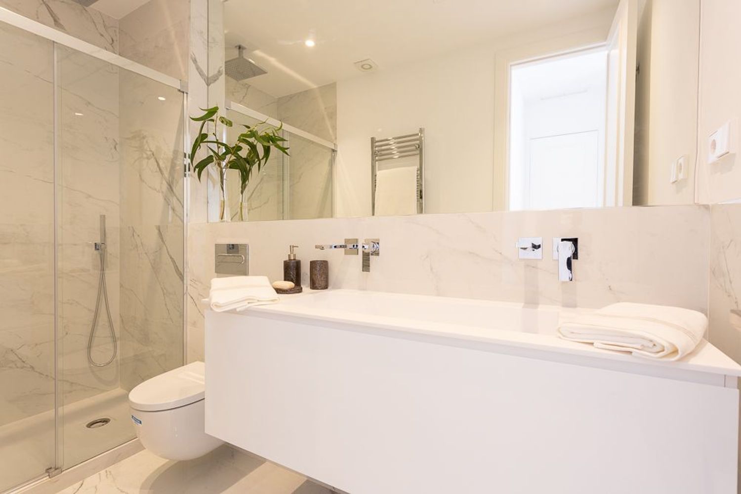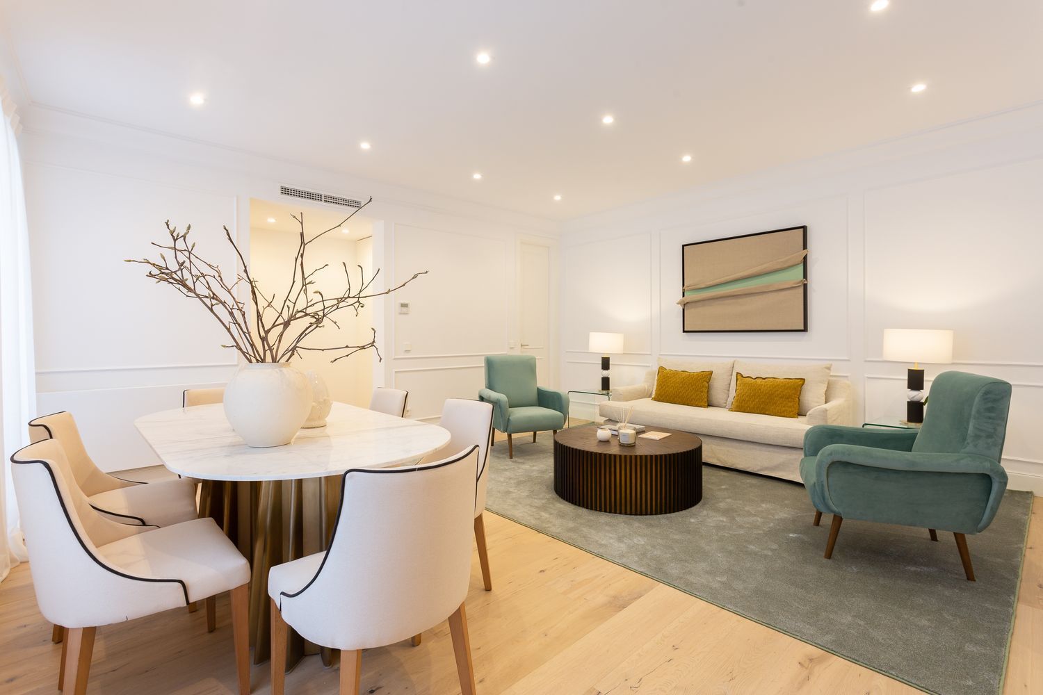 La vivienda, ubicada en una primera planta con orientación este, contará con un luminoso salón-comedor con dos balcones amplios que se abren directamente sobre la calle Lagasca, permitiendo la entrada de luz natural durante toda la mañana. La cocina será independiente y funcional, mientras que la zona de descanso incluirá tres dormitorios, dos baños completos —uno de ellos en suite en el dormitorio principal—, y armarios empotrados forrados y vestidos en todas las habitaciones.