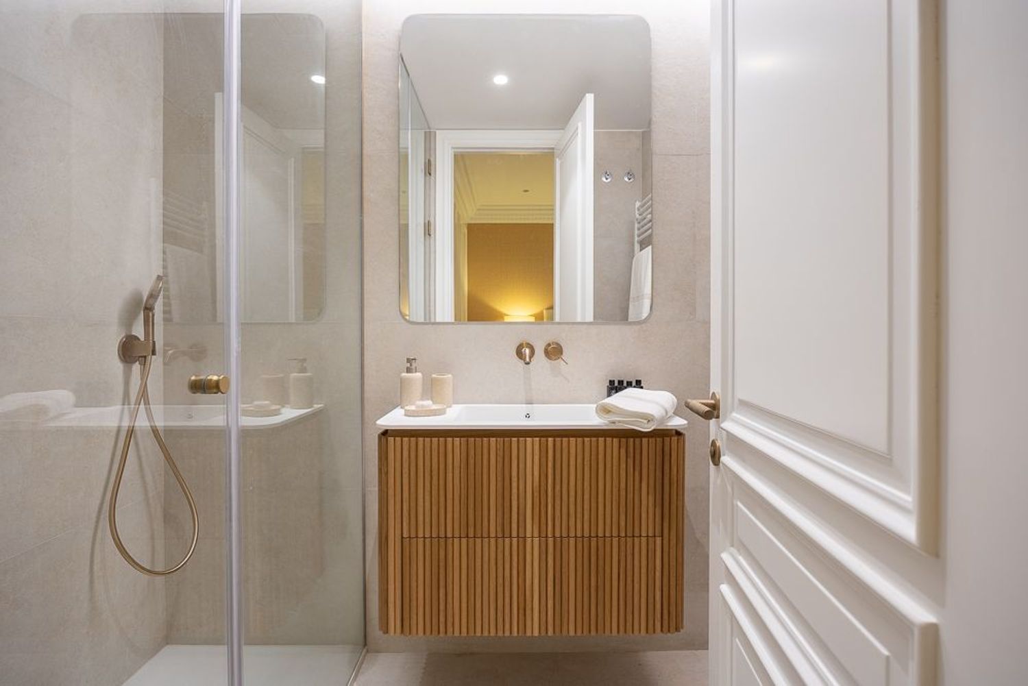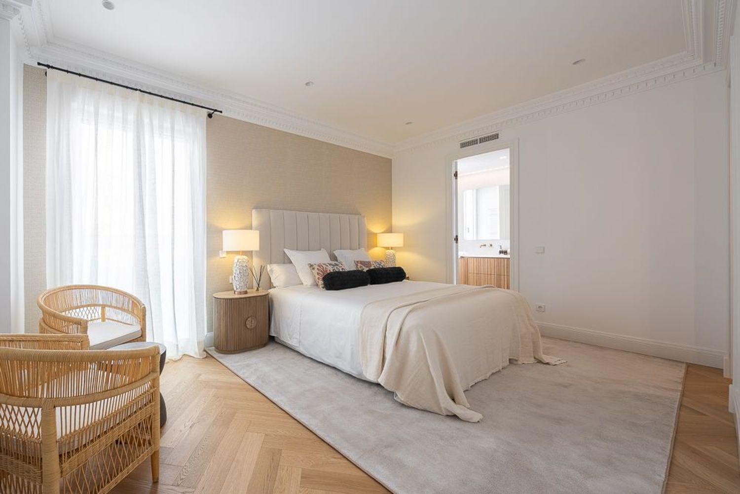 Este impresionante piso cuenta con cuatro dormitorios en suite, ideales para garantizar la privacidad y comodidad de toda la familia. Además, dispone de un aseo de invitados y un cuarto de lavandería, lo que añade funcionalidad a tu día a día. Las mejores calidades del mercado se reflejan en cada rincón, desde la encimera porcelánica de la cocina hasta los armarios forrados y vestidos de suelo a techo, maximizando así la capacidad de almacenaje.