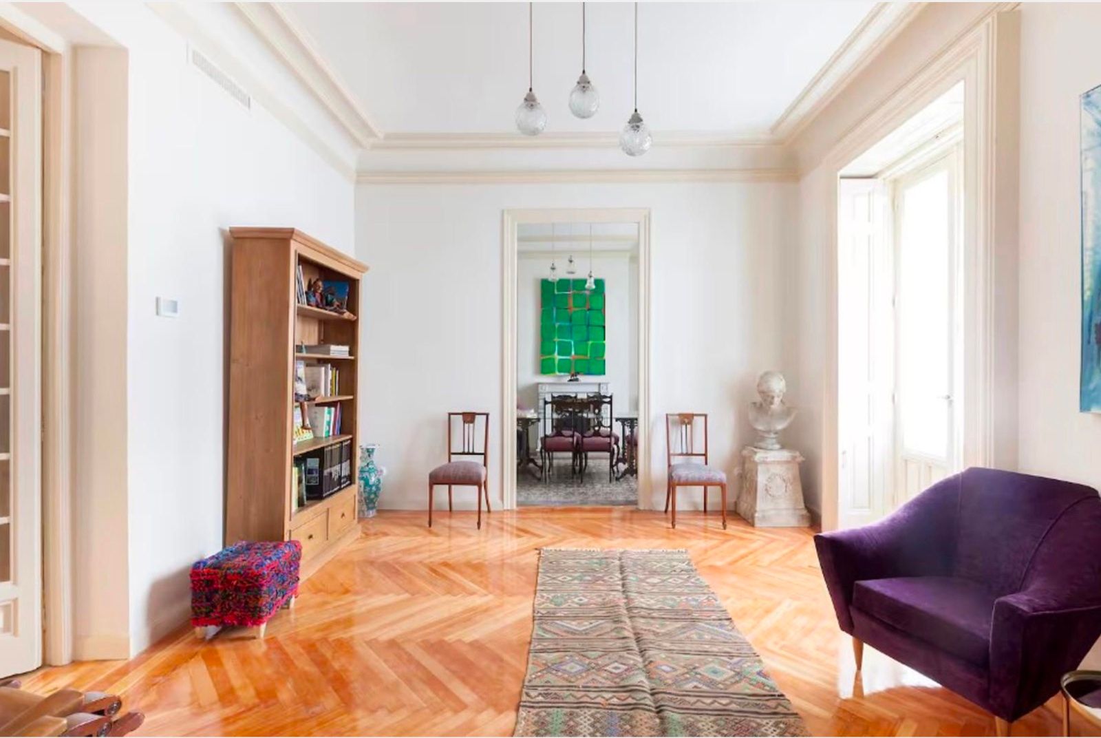 En la calle Larra, una de las más representativas del barrio de Justicia, se encuentra este piso de 296 m2 situado en la primera planta de un edificio clásico de principios del siglo XX. Rodeado de edificios históricos y un entorno lleno de vida cultural y gastronómica.