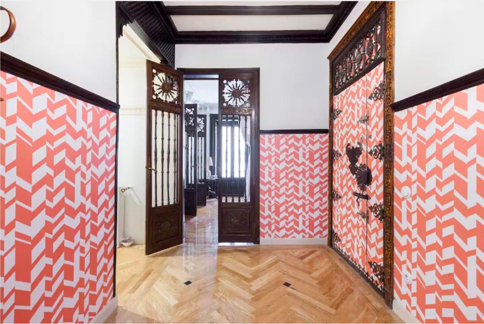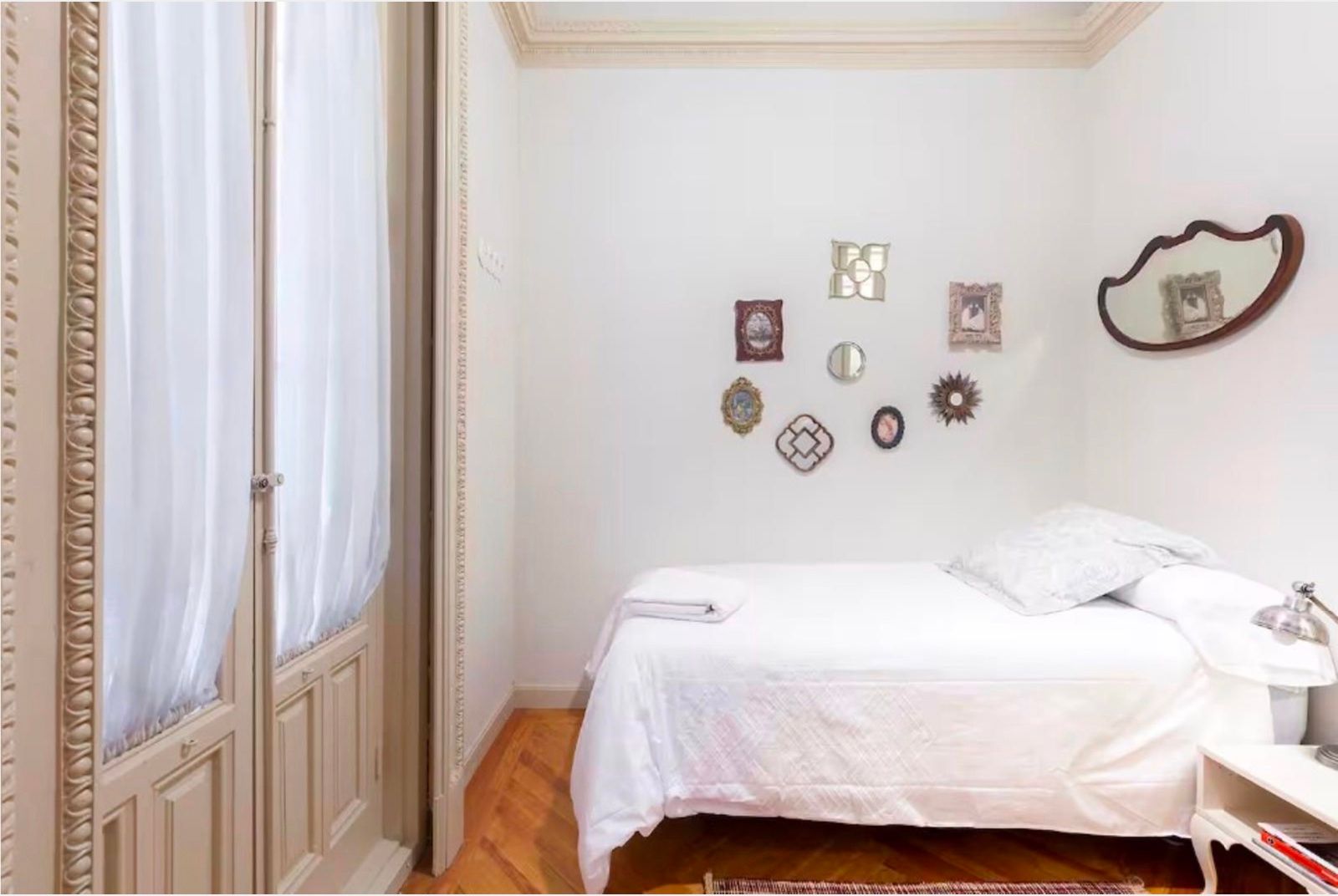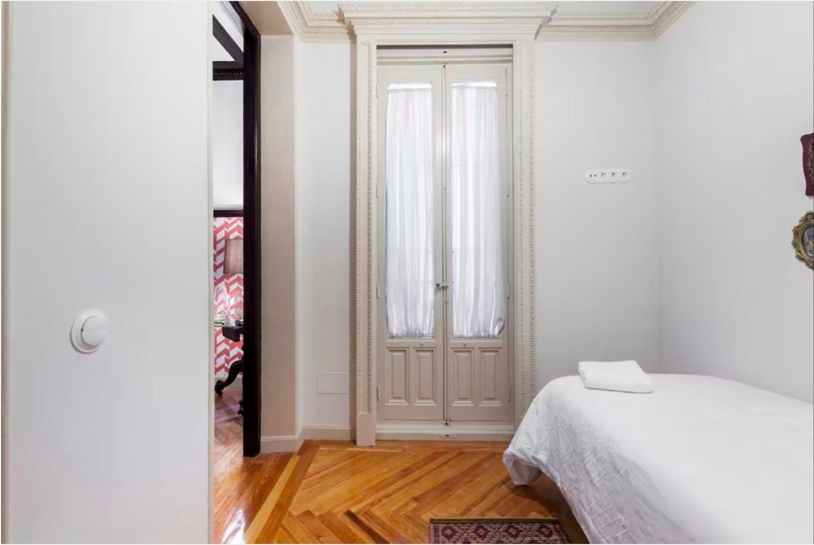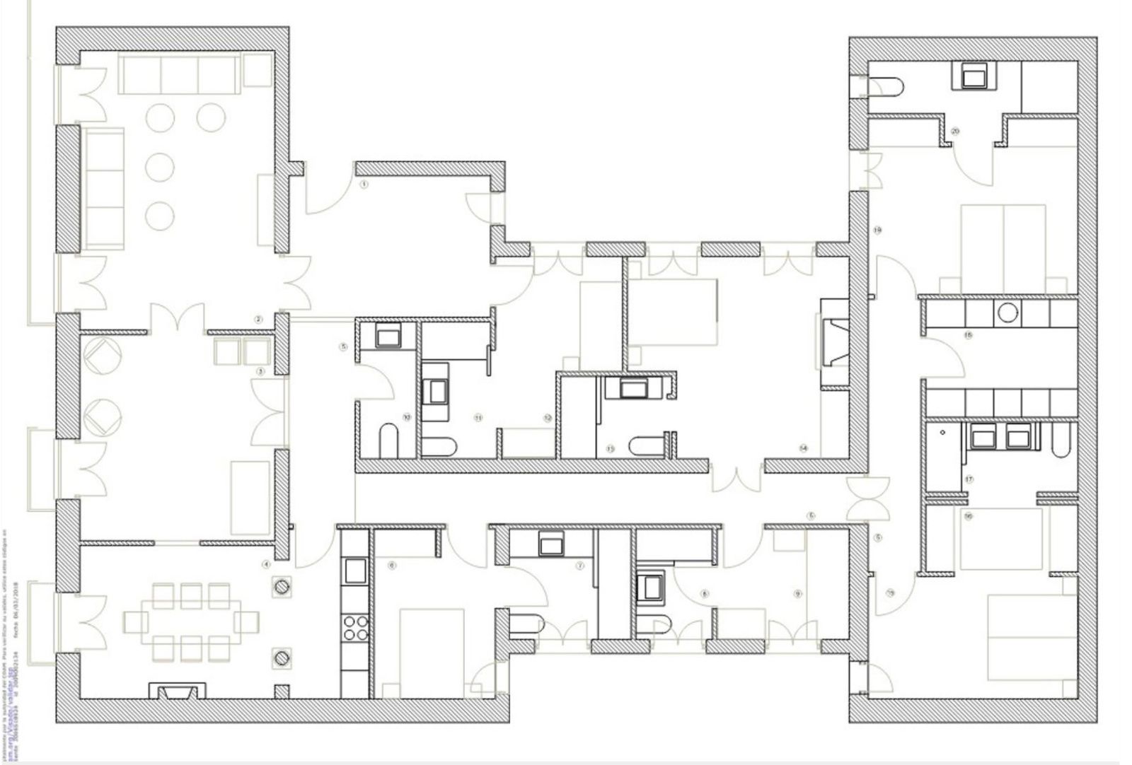 La vivienda conserva su carácter original gracias a sus techos de más de tres metros, molduras, contraventanas y puertas antiguas, a lo que se suman cuatro balcones a la calle que aportan luminosidad y encanto. La reforma se realizó en 2017 y el inmueble se distribuye en un gran recibidor que da paso a una amplia zona social con dos salones y un comedor integrado a la cocina, pensados para disfrutar de espacios abiertos y acogedores. La zona de noche cuenta con seis dormitorios, todos ellos con baño en suite, ofreciendo comodidad e independencia. Además, dispone de aire acondicionado por conductos, calefacción central y un trastero en la finca.