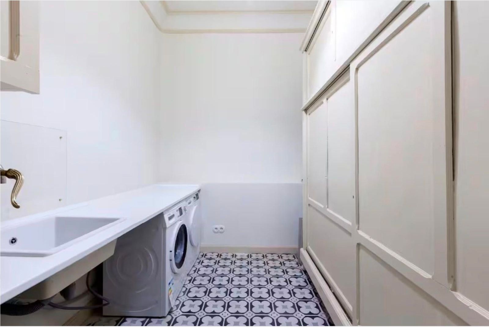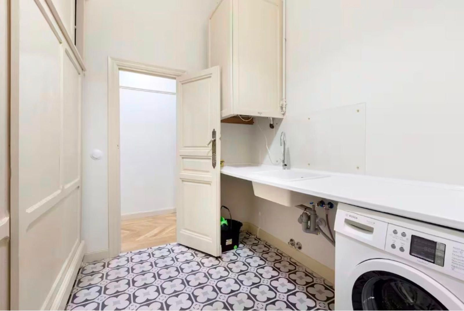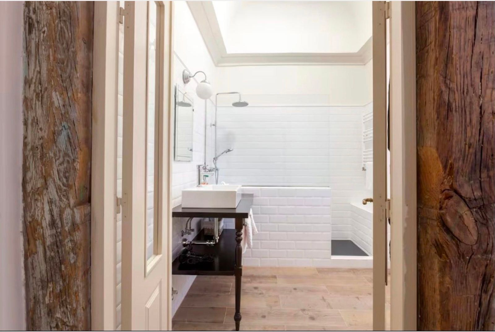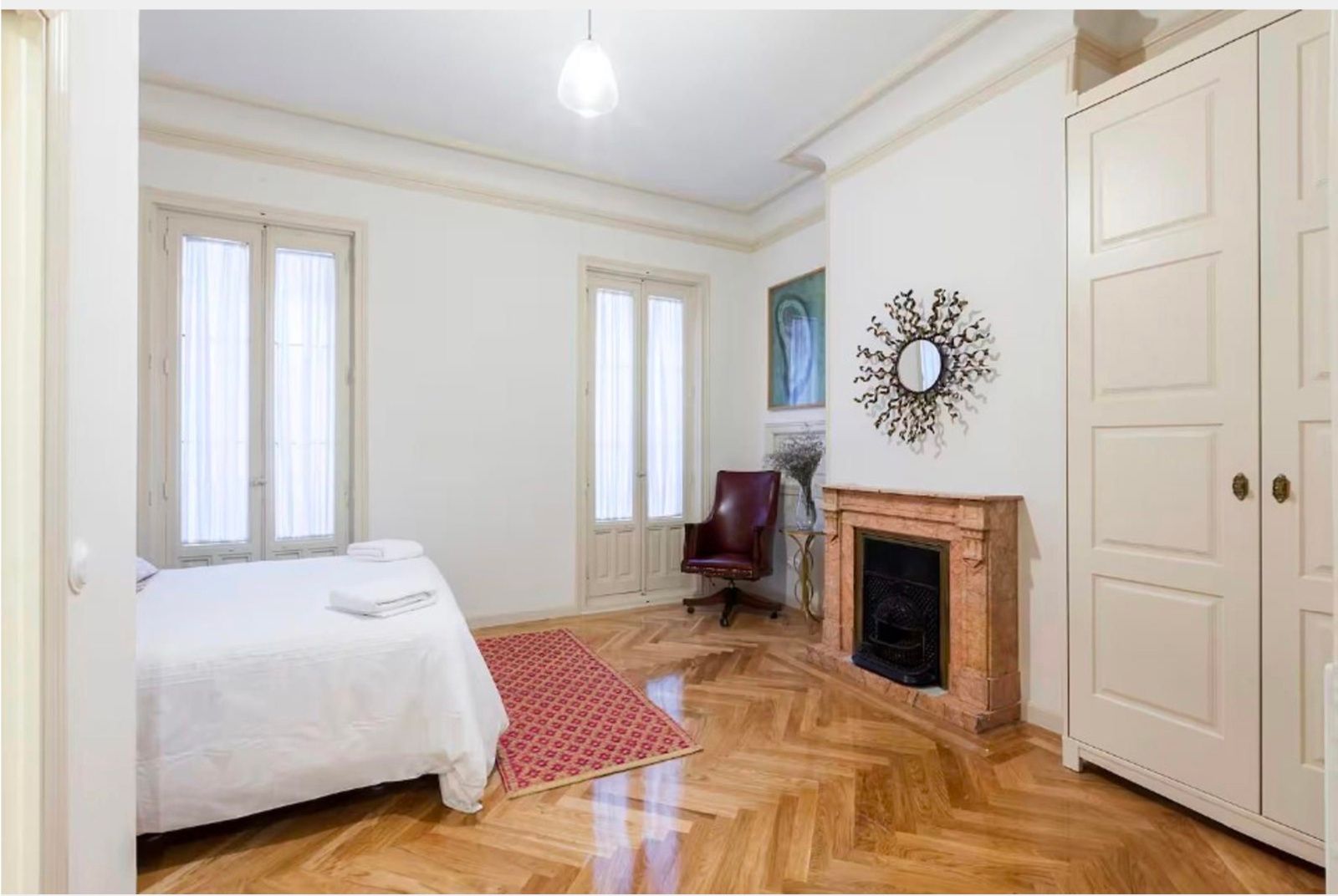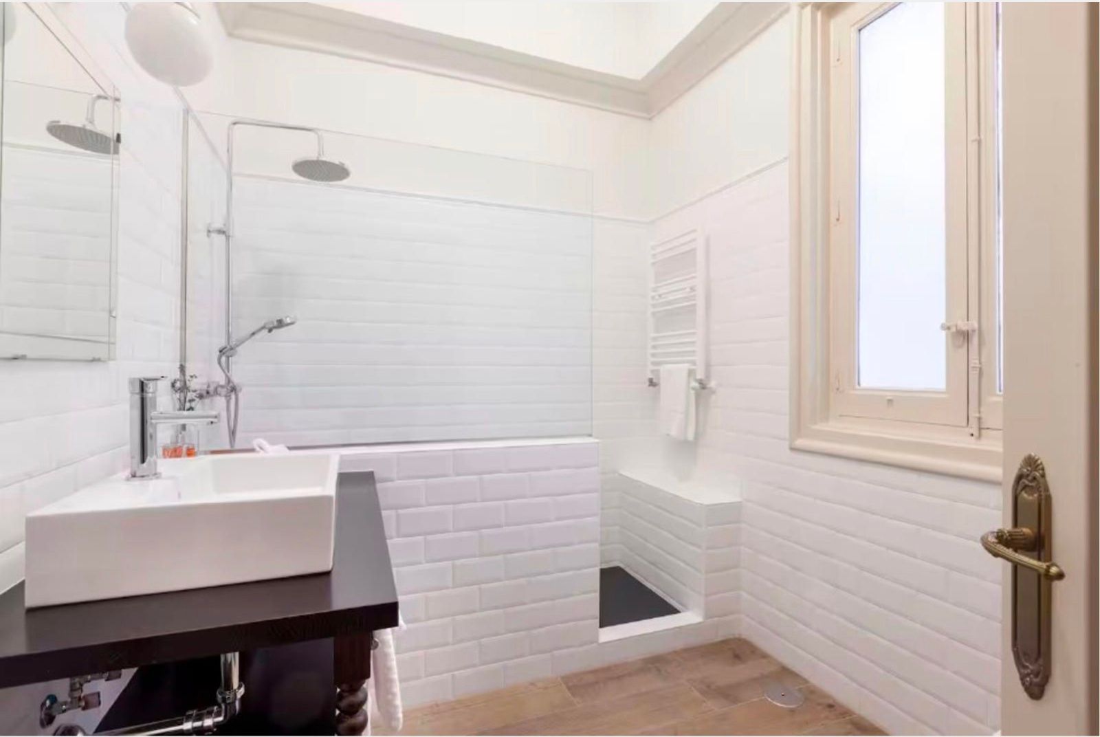 La vivienda conserva su carácter original gracias a sus techos de más de tres metros, molduras, contraventanas y puertas antiguas, a lo que se suman cuatro balcones a la calle que aportan luminosidad y encanto. La reforma se realizó en 2017 y el inmueble se distribuye en un gran recibidor que da paso a una amplia zona social con dos salones y un comedor integrado a la cocina, pensados para disfrutar de espacios abiertos y acogedores. La zona de noche cuenta con seis dormitorios, todos ellos con baño en suite, ofreciendo comodidad e independencia. Además, dispone de aire acondicionado por conductos, calefacción central y un trastero en la finca.