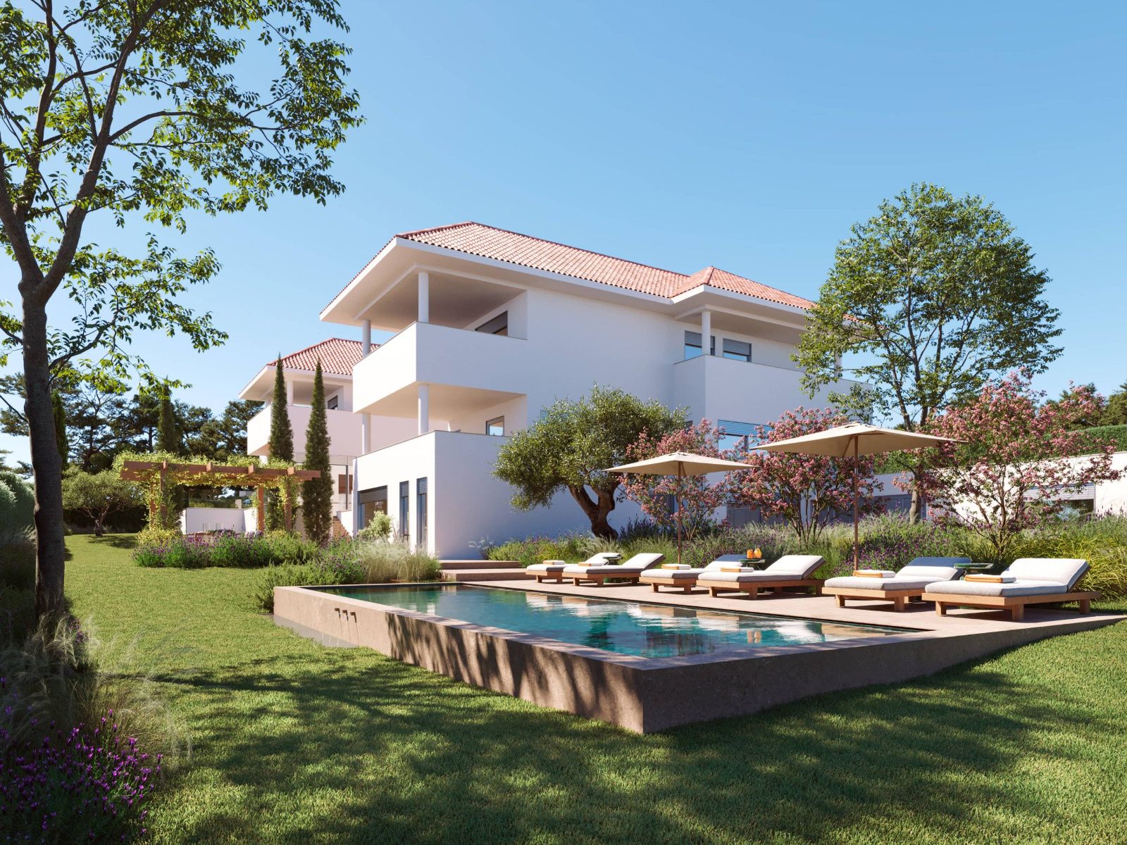 Piscina y amplias zonas verdes.