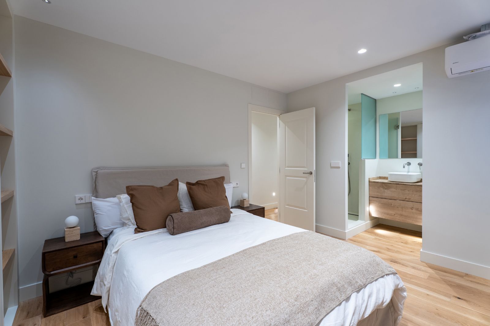 En la zona de descanso, podemos encontrar 3 dormitorios dobles, cada uno con baño en suite, además de un aseo de cortesía para invitados.