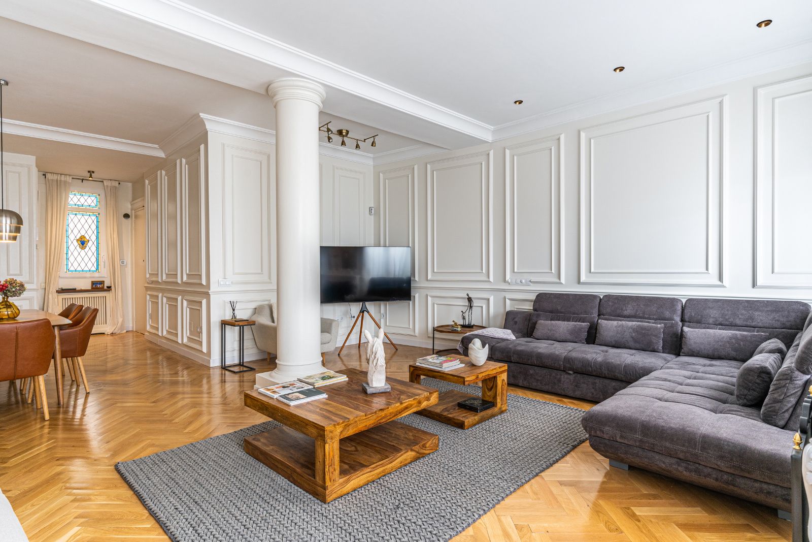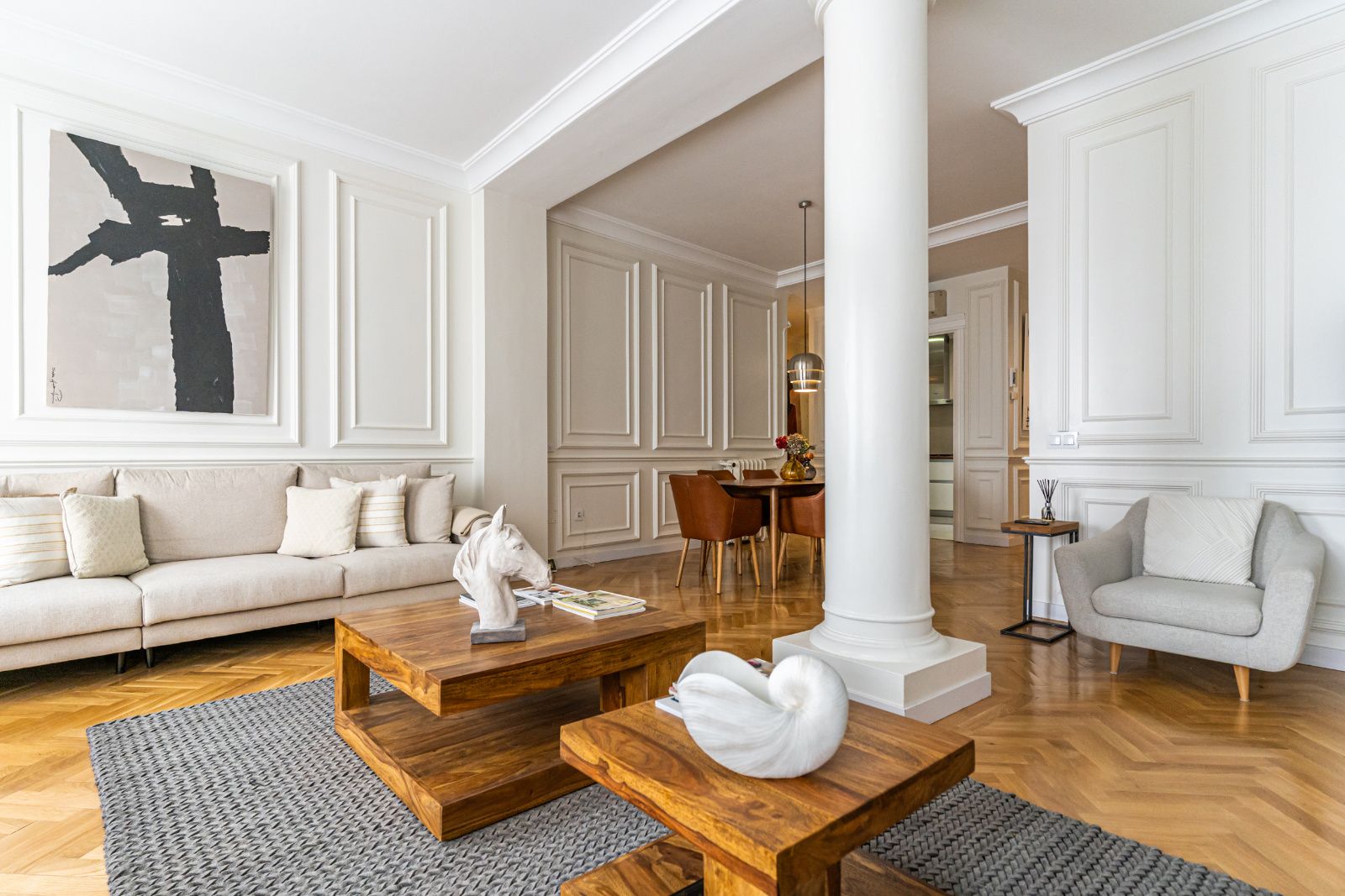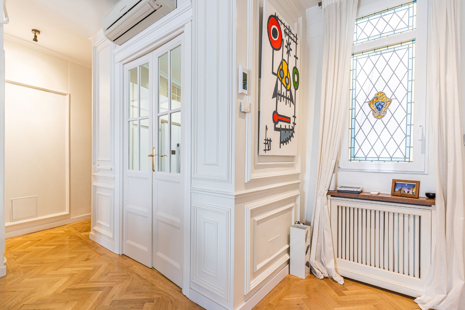 Situado en un edificio clásico, la vivienda combina el encanto de la arquitectura histórica con un diseño interior contemporáneo que aporta sofisticación y modernidad. Se entrega completamente amueblada y decorada con un cuidado interiorismo de autor, concebido para ofrecer confort y estilo en cada detalle.