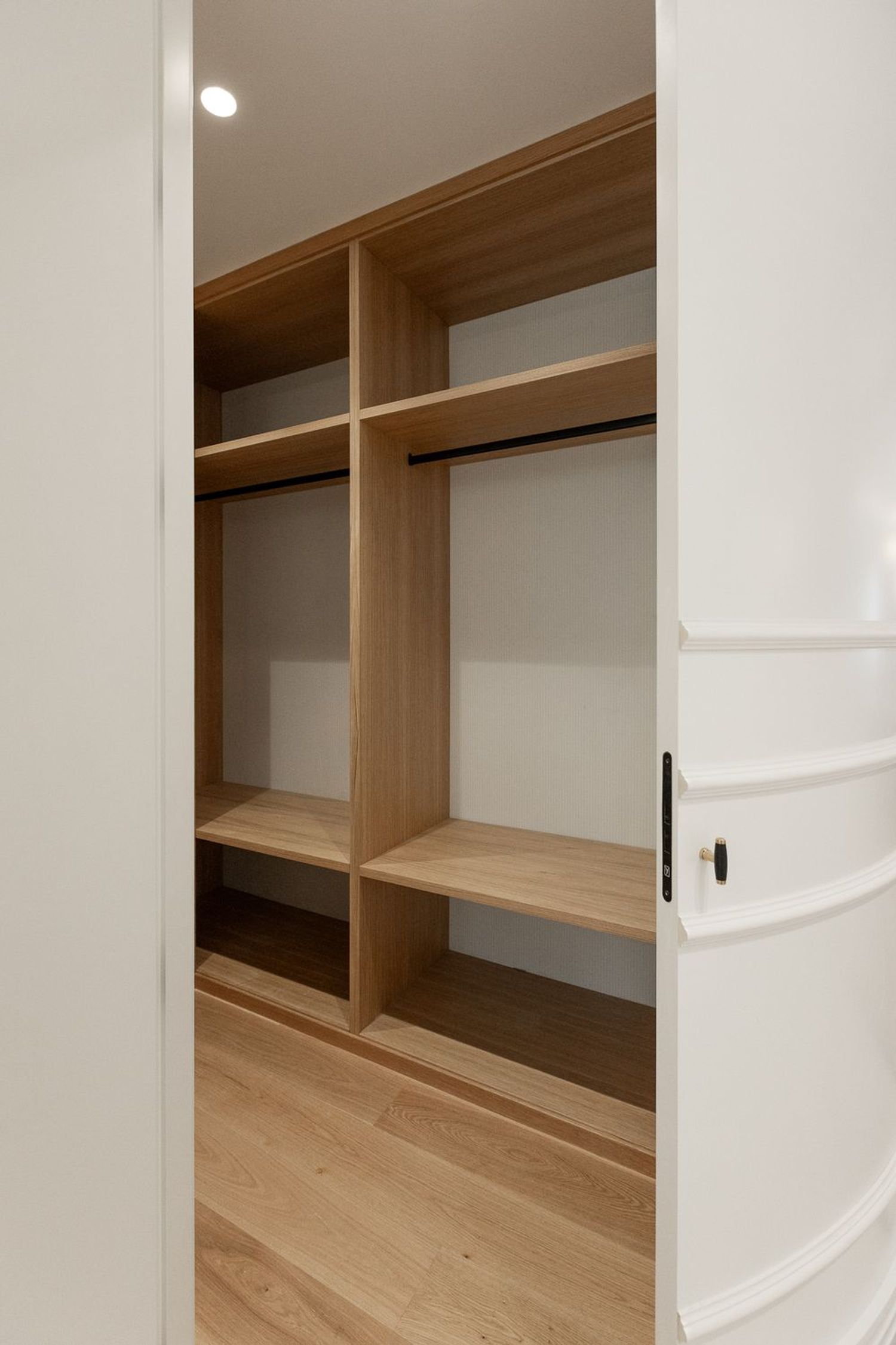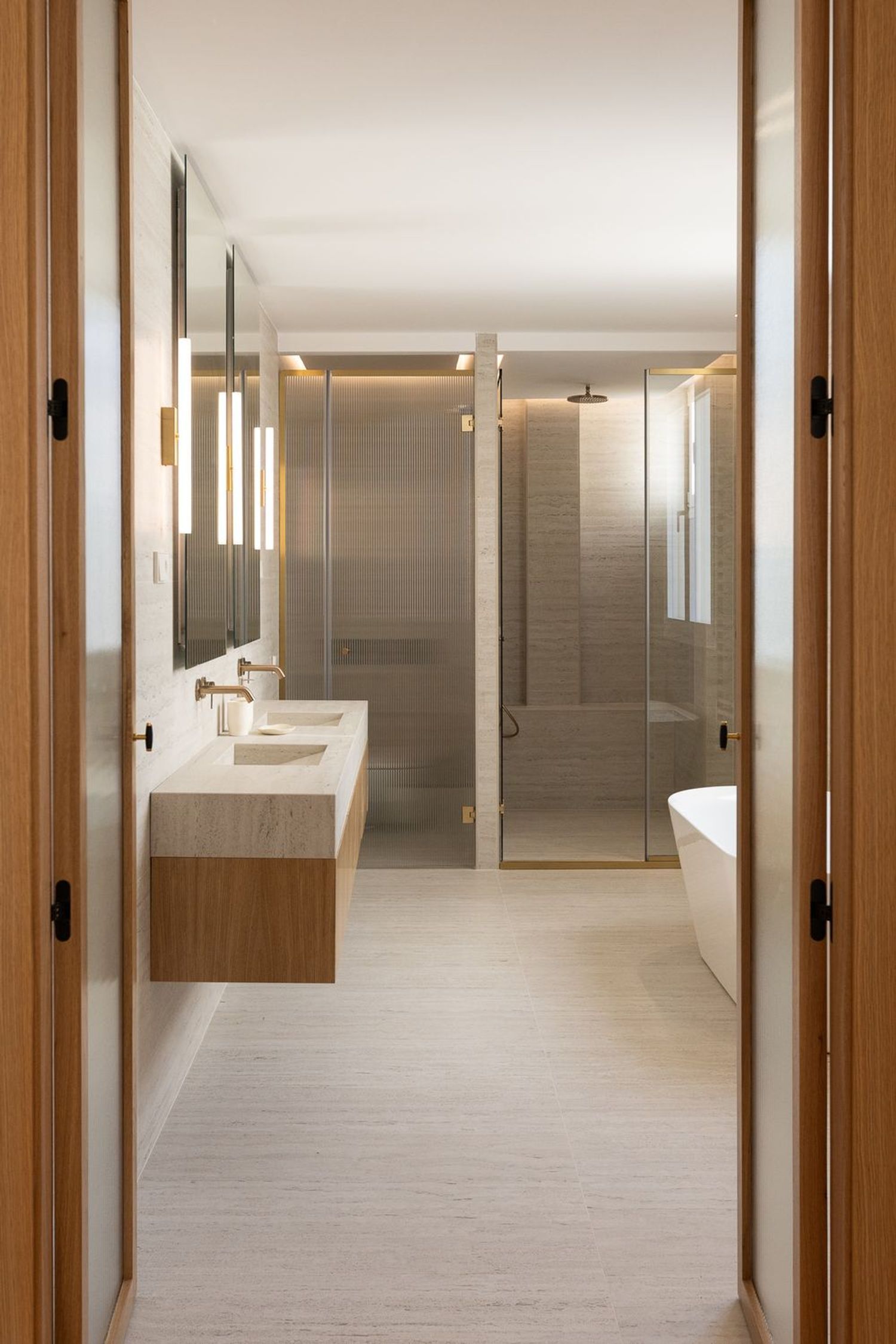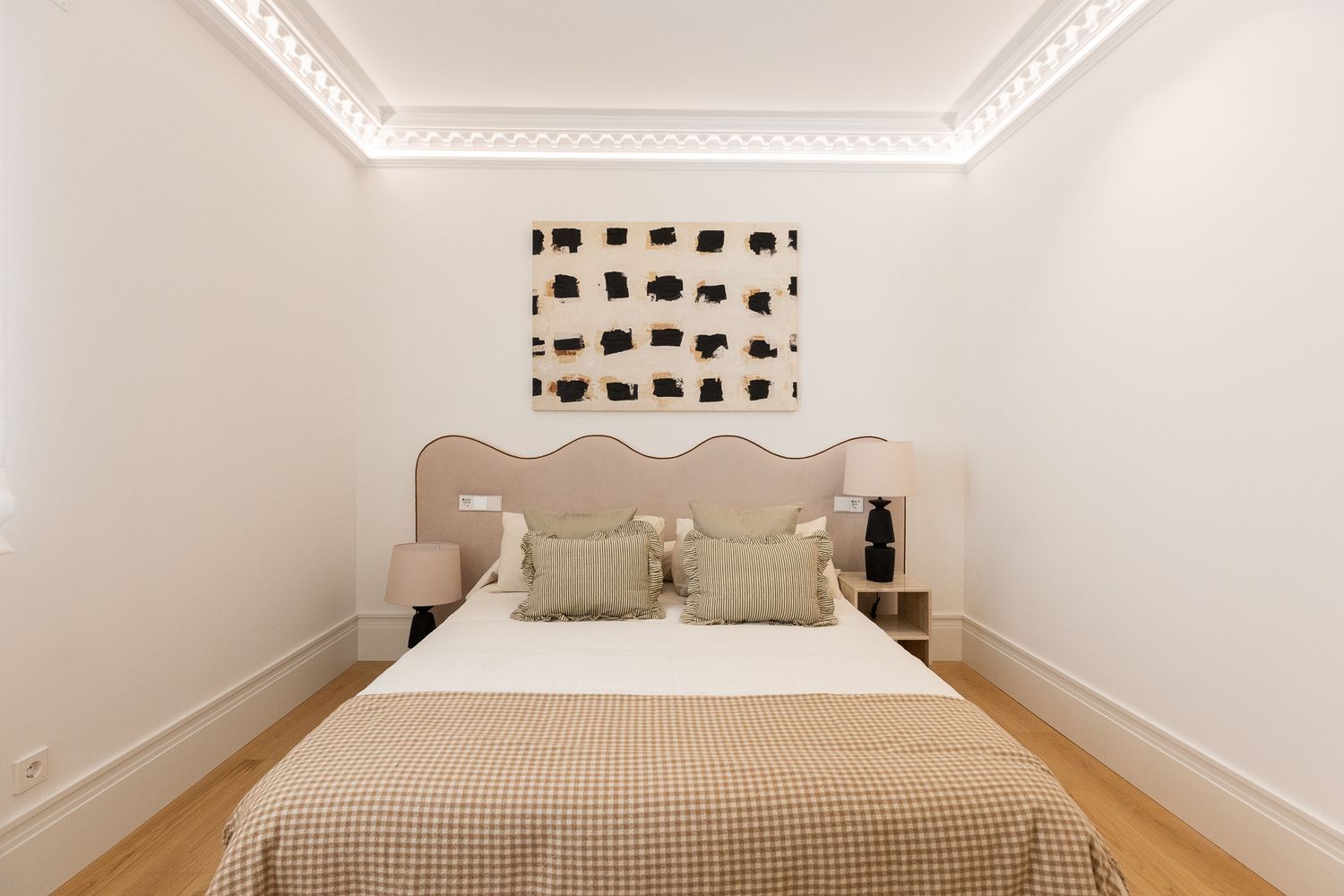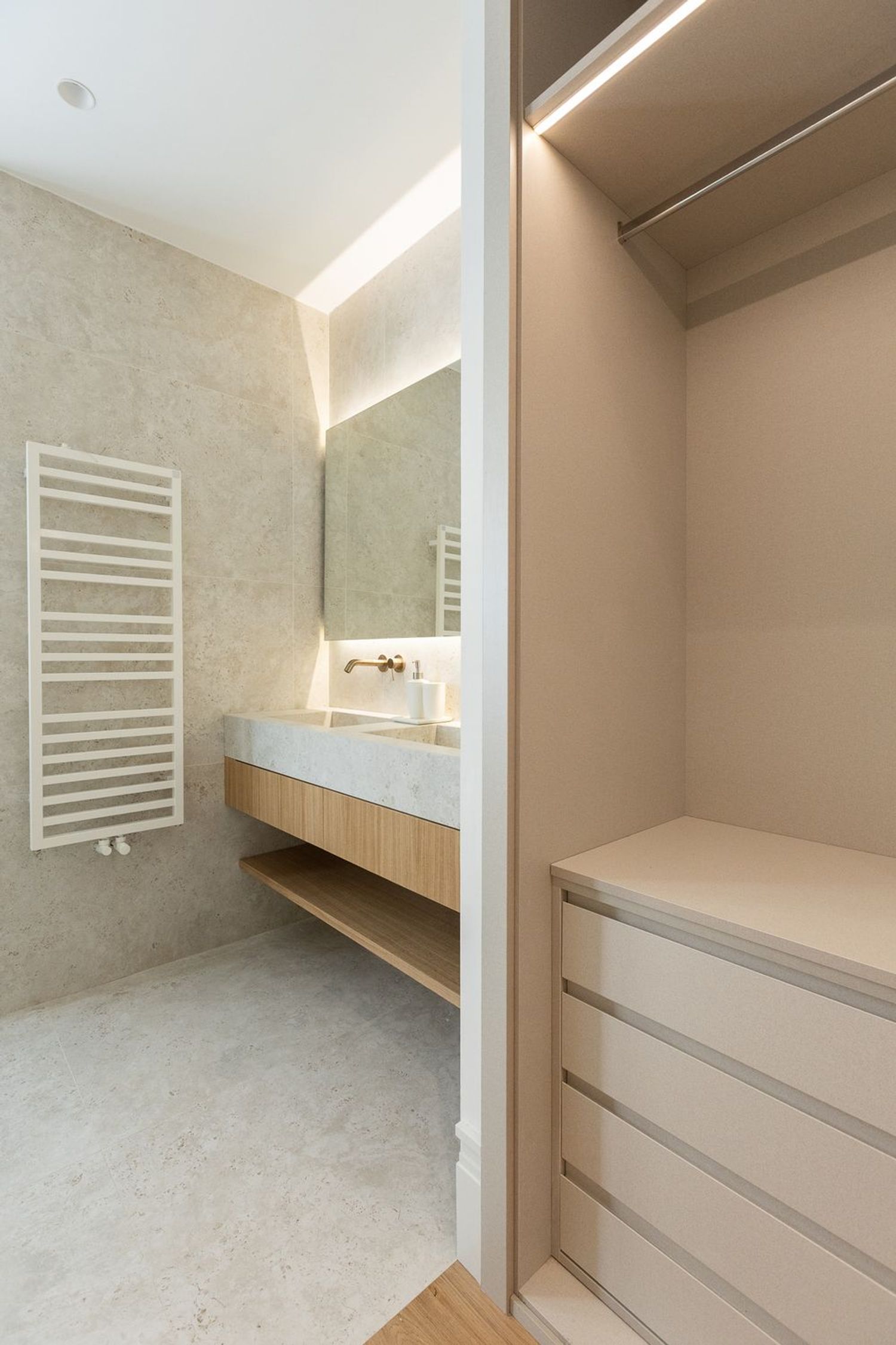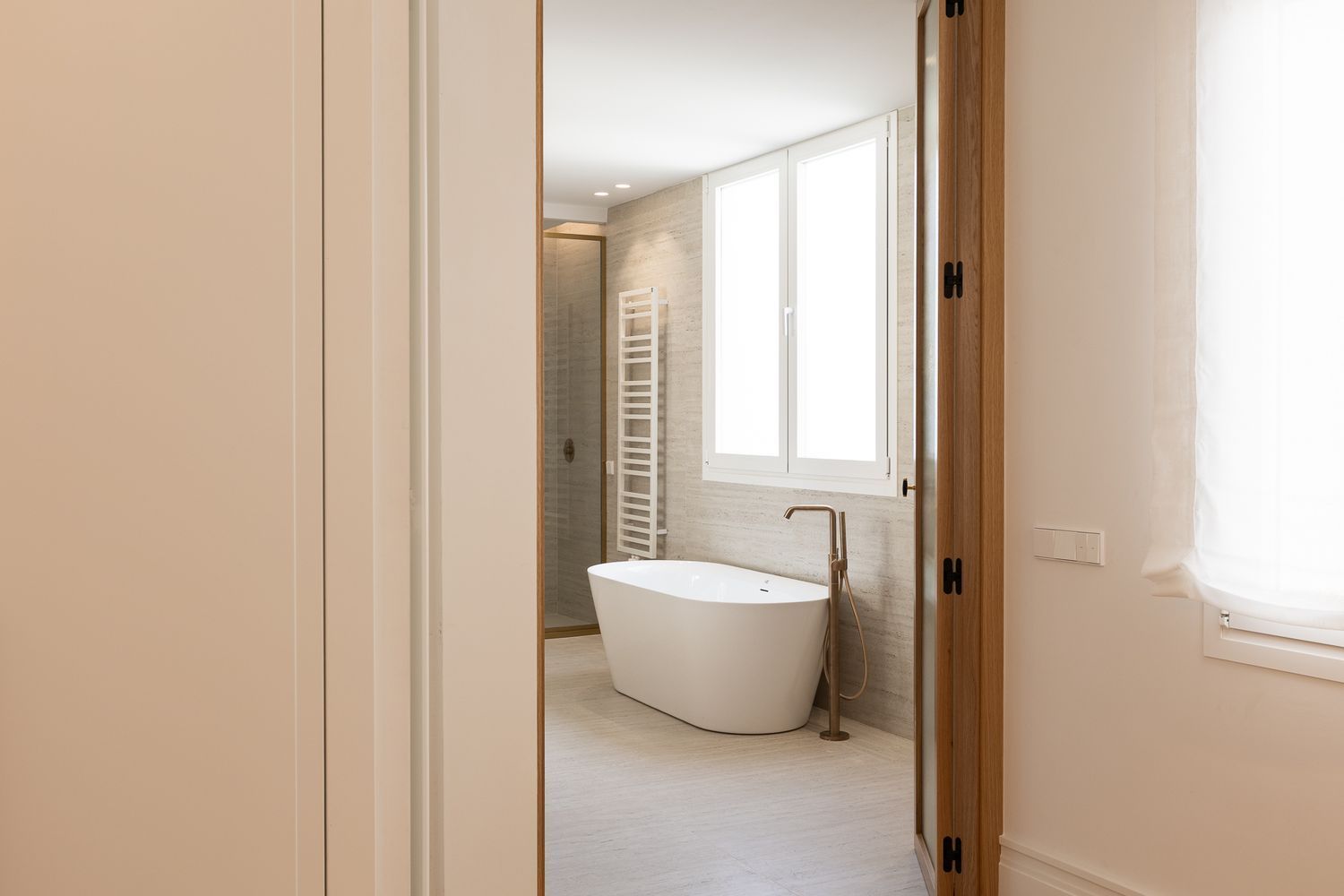 Suelo de roble natural en espiga, un guiño al clasicismo reinterpretado con sofisticación.