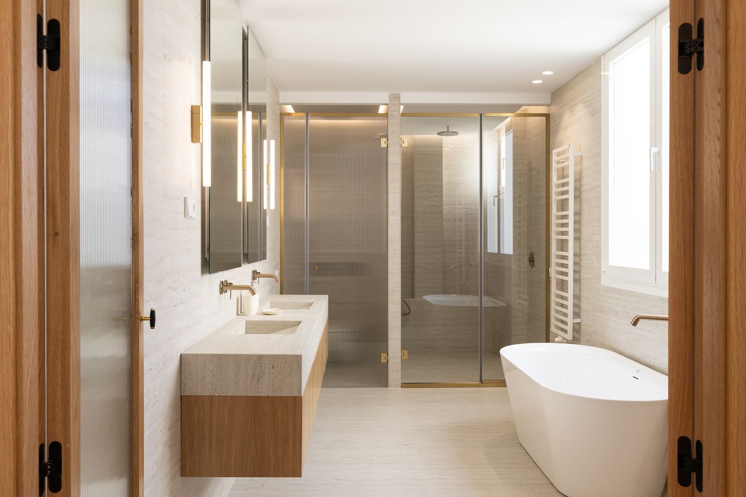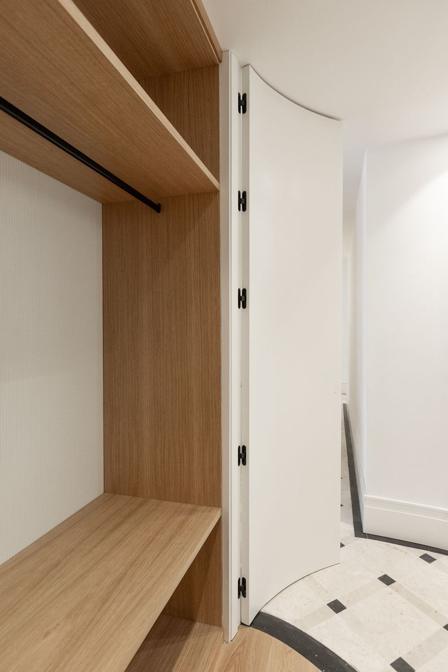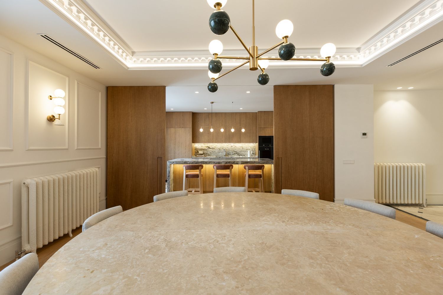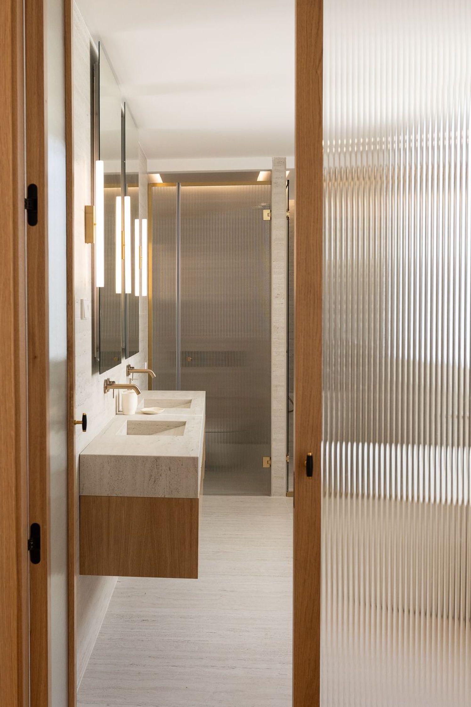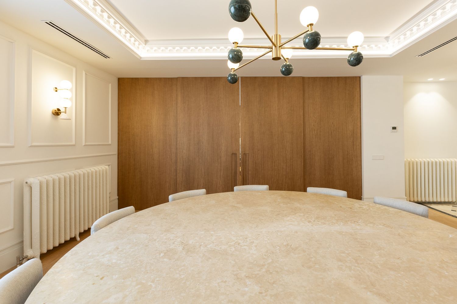 Suelo de roble natural en espiga, un guiño al clasicismo reinterpretado con sofisticación.