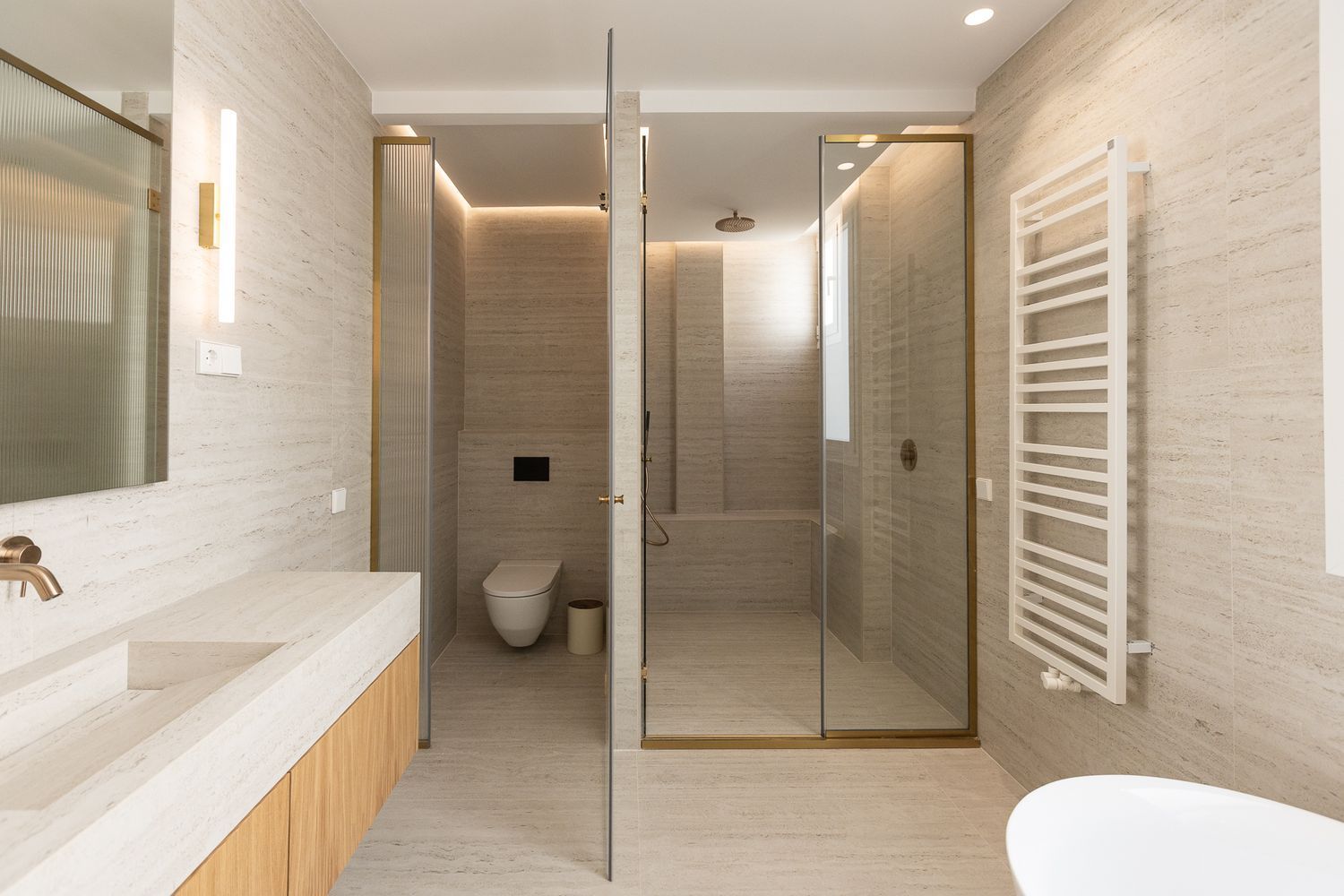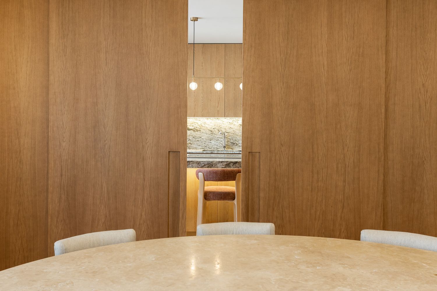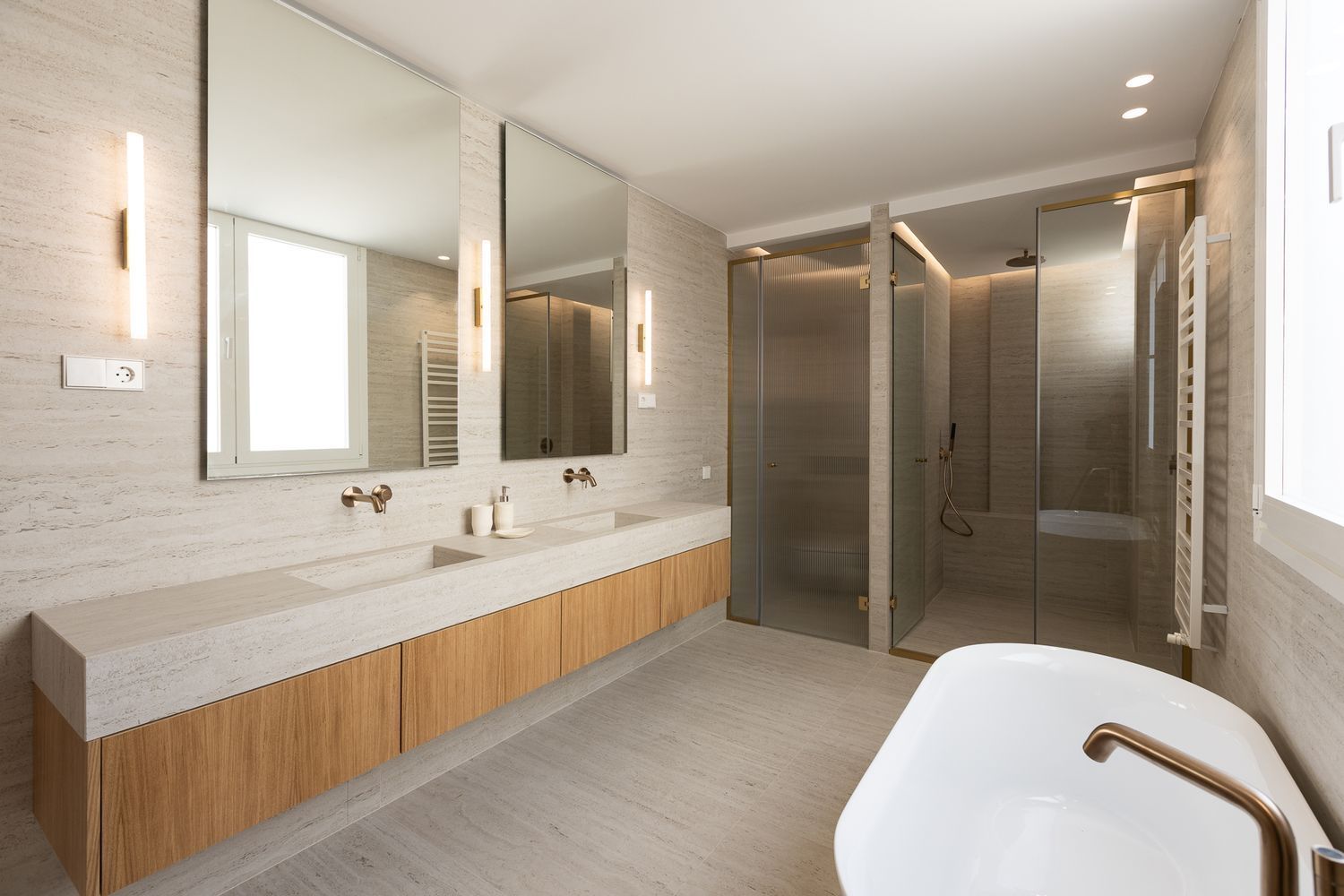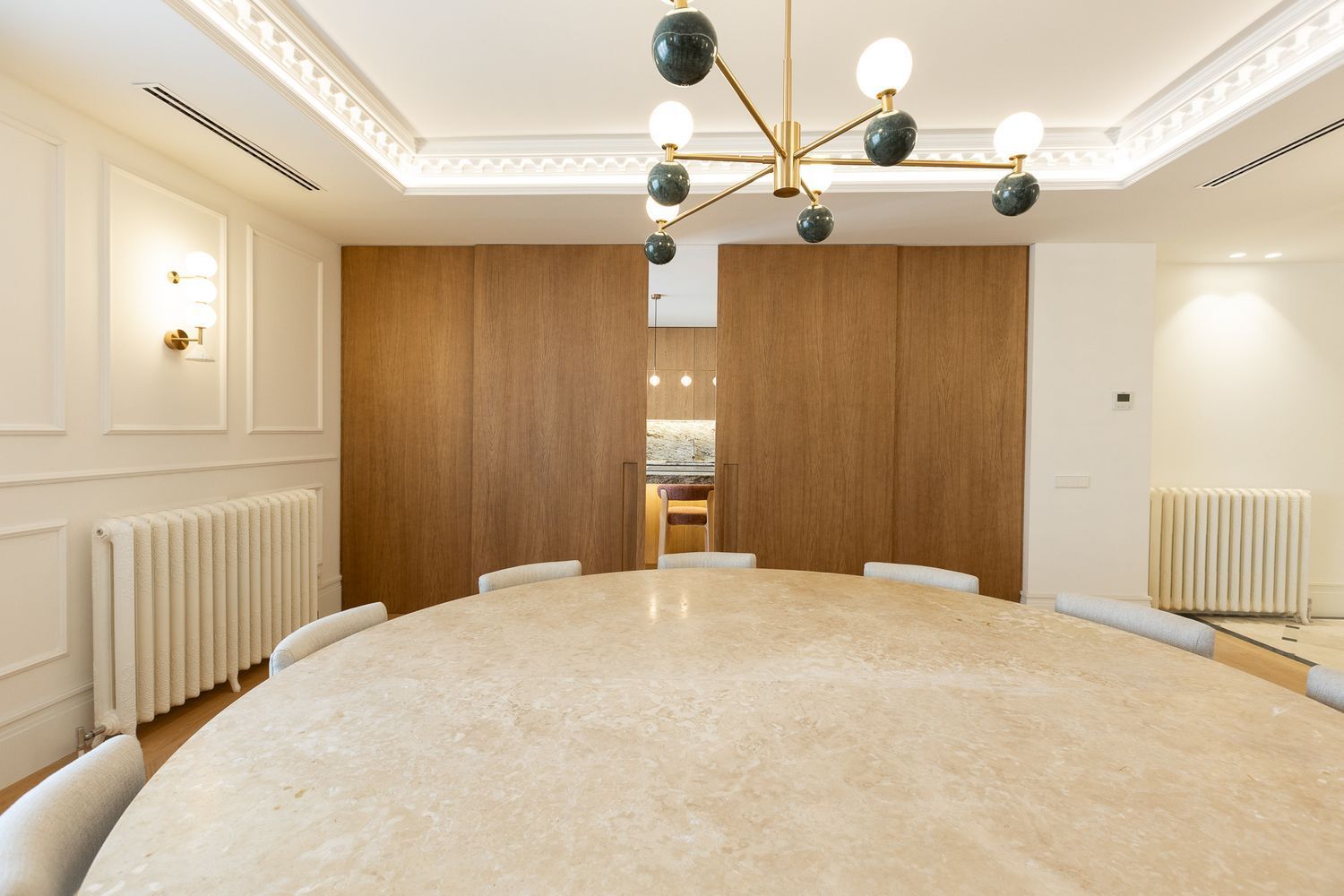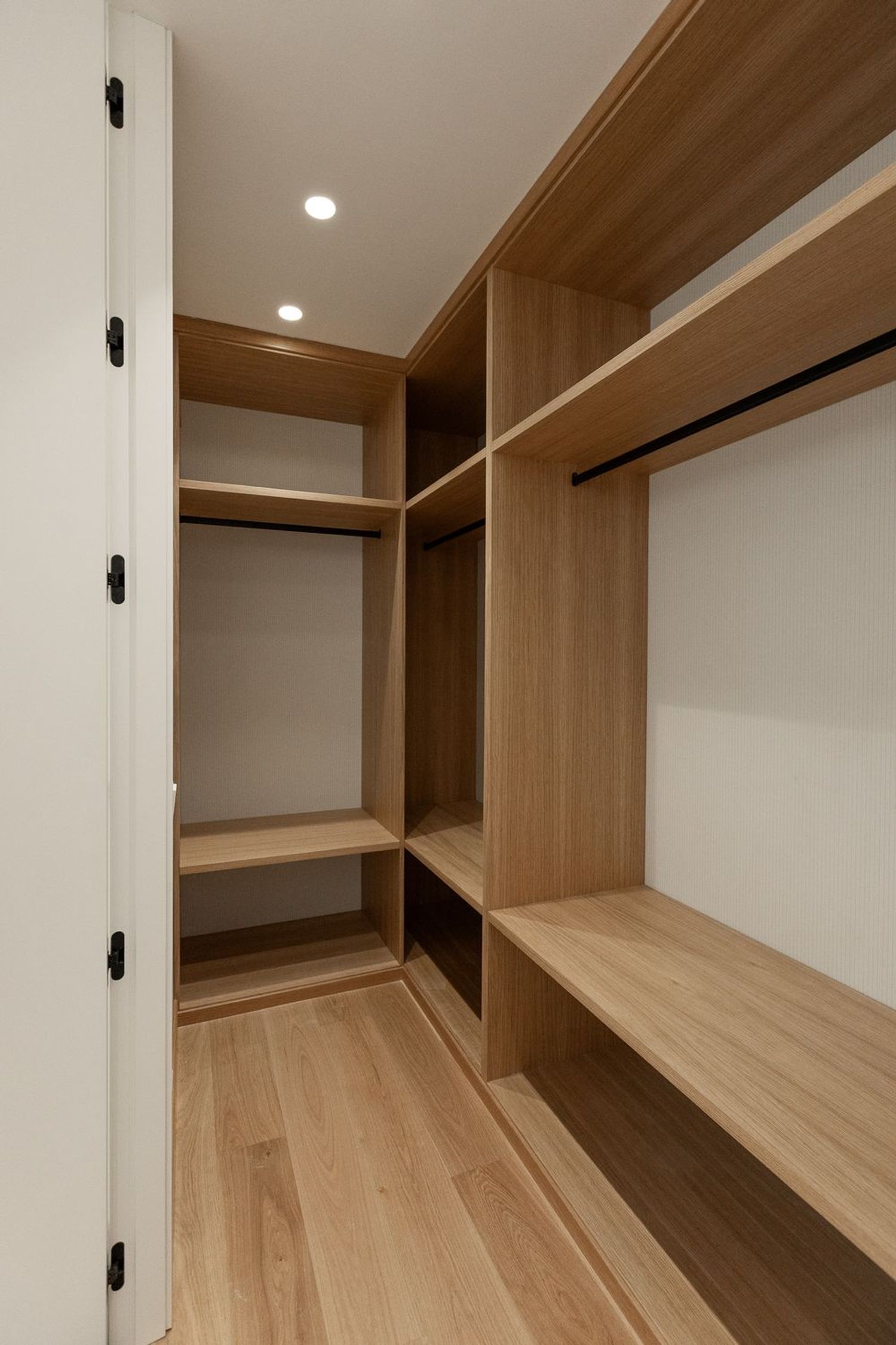 Suelo de roble natural en espiga, un guiño al clasicismo reinterpretado con sofisticación.