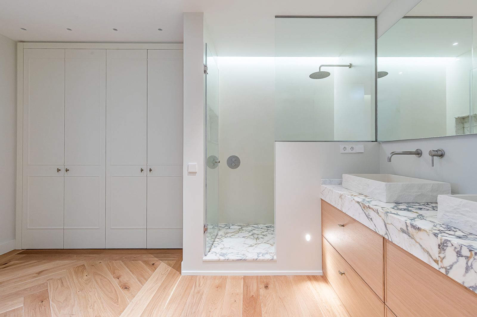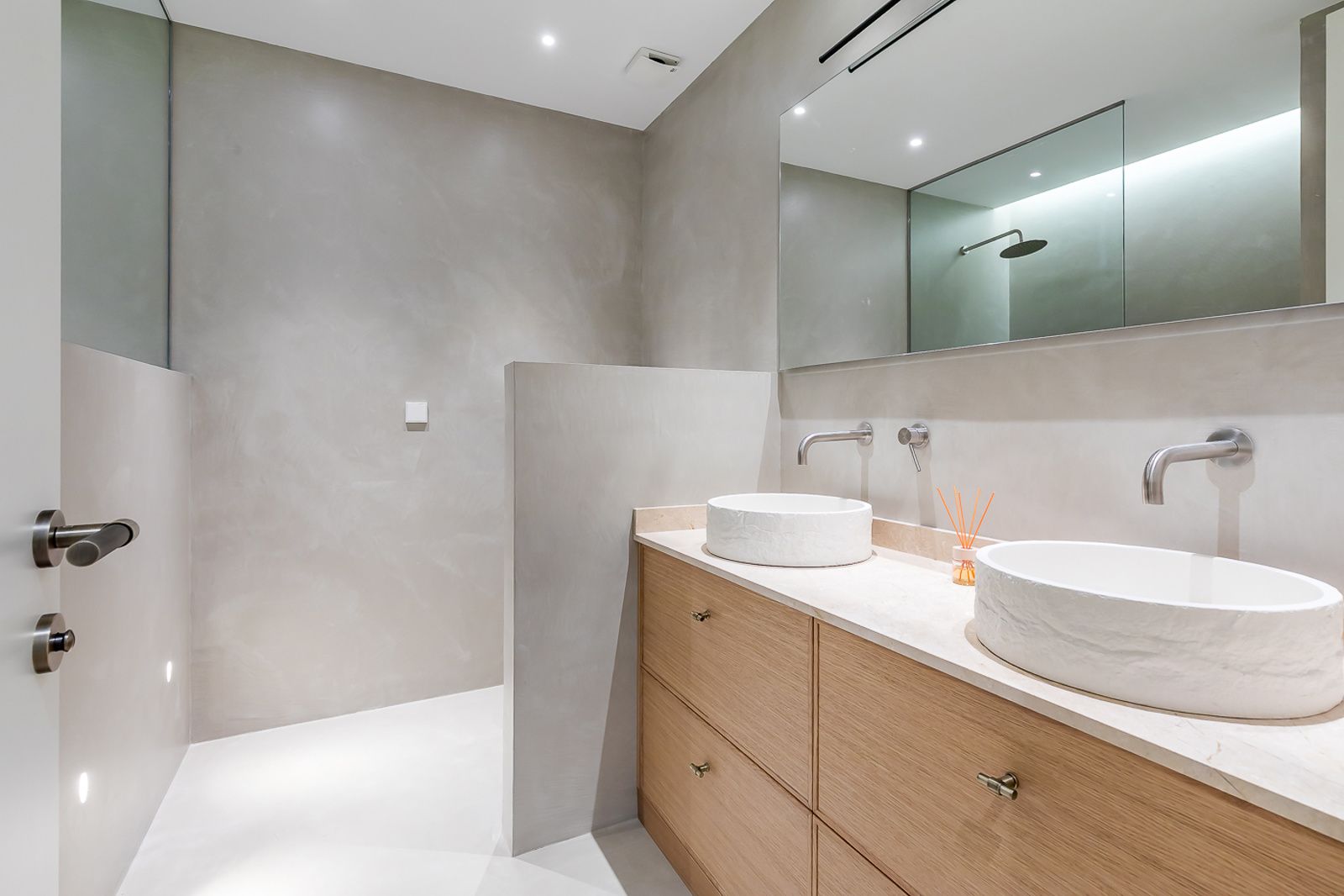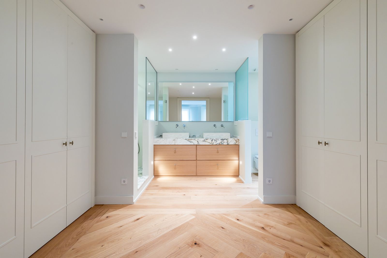 La zona de descanso se compone de tres amplios dormitorios, todos ellos proyectados con baño en suite para garantizar la máxima intimidad. La master suite se erige como un santuario de confort, integrando un vestidor de generosas dimensiones que equilibra a la perfección estética y funcionalidad.