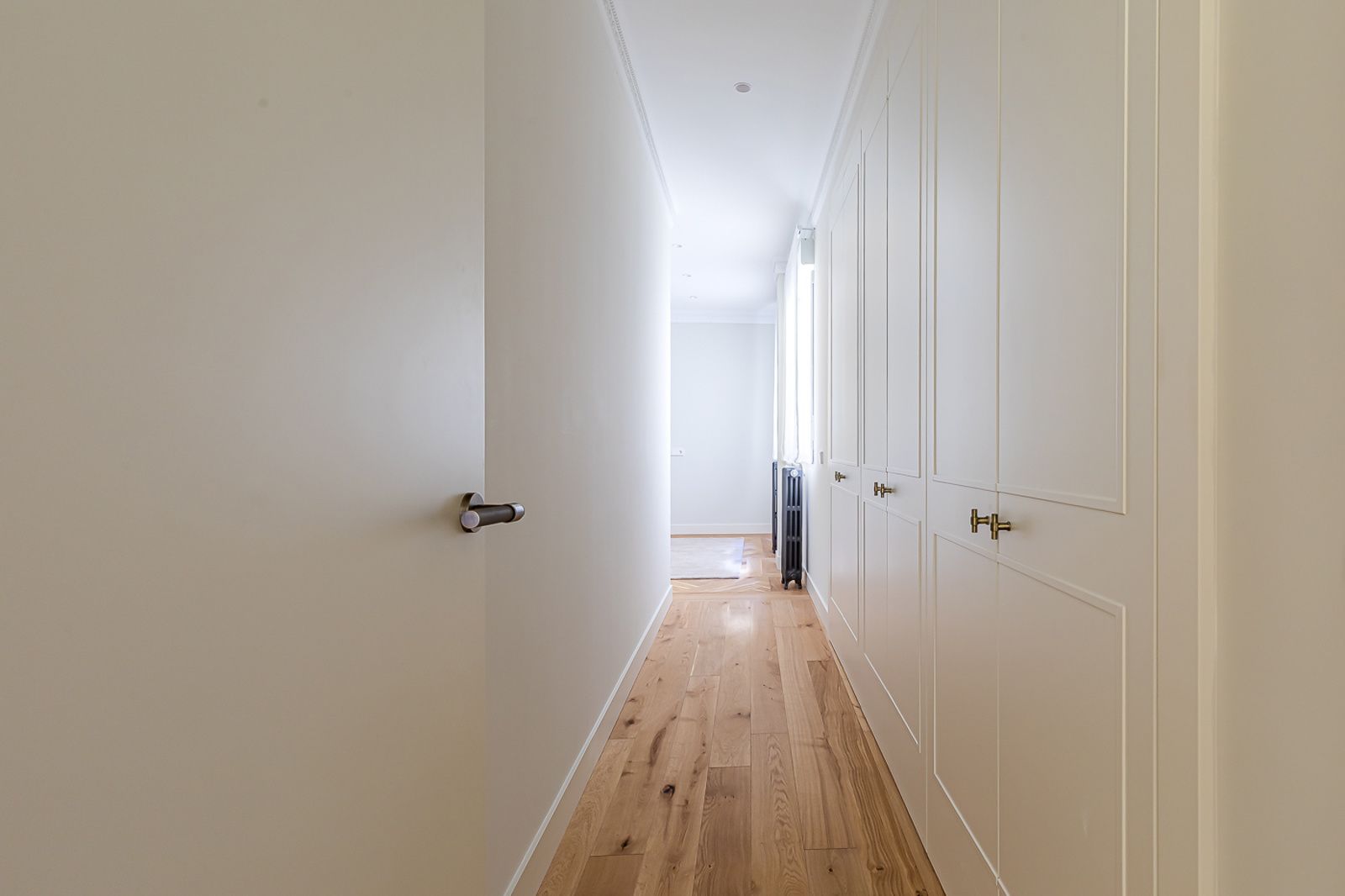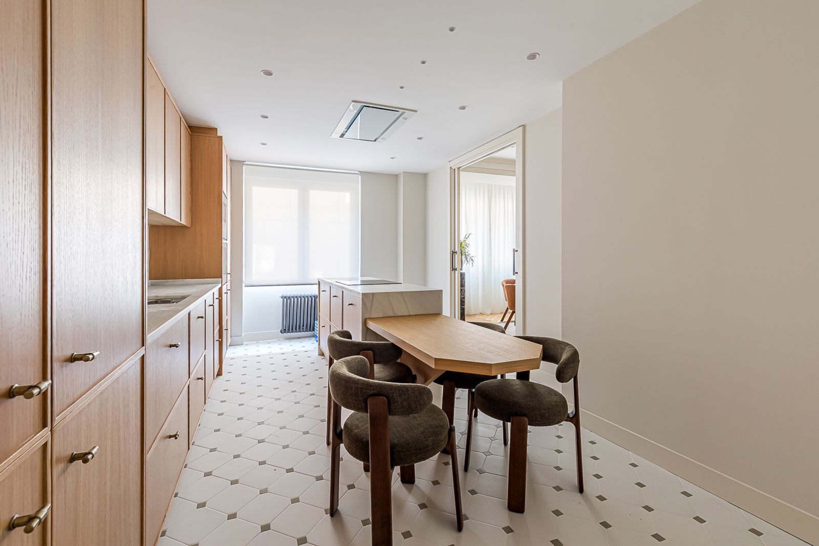 Presentamos esta sofisticada propiedad de 205 m², ubicada en la tercera planta de una distinguida finca de 1954. El edificio, que destaca por su impecable conservación, cuenta con un portal de corte clásico y servicio de portería, reflejando el señorío propio de las calles más codiciadas del distrito.